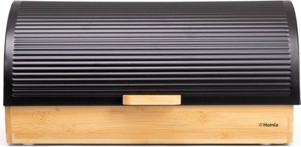 CHLEBAK | TROPEA | DUŻY | 27,5x38,5x18,5cm | 741685 Kód produktu: 237252 Výrobce: HOMLA.Ideální pro pekařské výrobky pro celou rodinuStylová kombinace dřeva a černé barvyRozměry: 23 cmRolovací víko pro snadné otevíráníVelký chlebník TROPEAChlebník TROPEA upoutá pozornost elegantní kombinací sytě černé barvy a přírodního dřeva. Jeho kulatý tvar a nápadná kresba mu dodávají moderní charakter, který se hodí do minimalistických i klasických kuchyní. Je nejen praktickým místem pro uložení chleba, ale také ozdobou kuchyňské pracovní desky.Účel použitíVelký zásobník na chléb o šířce 23 cm umožňuje pohodlné uložení chleba, rohlíků, baget nebo ciabatty a chrání je před vysycháním. Praktické rolovací víko zajišťuje snadný přístup k obsahu i v menších kuchyních.MateriálZákladna je vyrobena z přírodního dřeva, víko z robustního kovu s matnou povrchovou úpravou. Celkový vzhled je moderní a chlebník se snadno udržuje v čistotě.ROZMĚRY: 27,5x38,5x18,5 cmMATERIÁL 1: KOVMATERIÁL 2: BAMBUSEAN-PROPERTY: 5906496741685ROČNÍ OBDOBÍ: M2 24/25KONTAKT S POTRAVINAMI: ANOBARVA 1: ČERNÁMATERIÁL 1 %: 80MATERIÁL 2 %: 20BARVA: ČERNÁMARKETINGOVÝ NÁZEV: TROPEAZNAČKA: HOMLA
