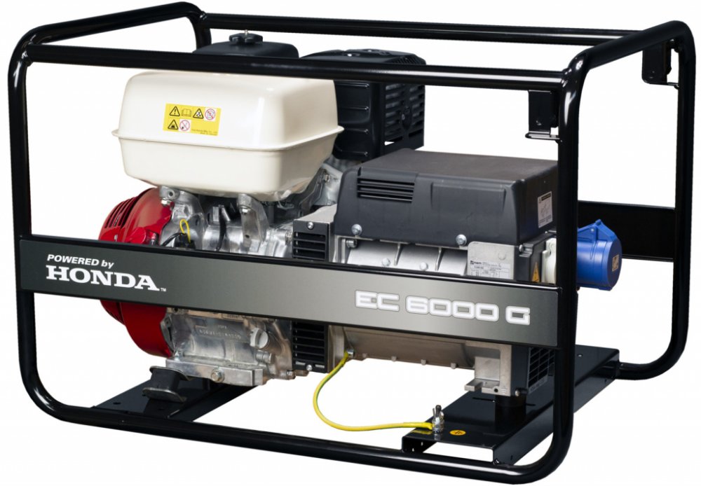 Elektrocentrála HONDA EC 6000G AVR: ryze profesionální model malé, jednofázové elektrocentrály s regulací výstupu pomocí AVR. Výkonný alternátor pohání profesionální motor řady GX s lehkým startem a to vše ukotveno v pevném ocelovém rámu.