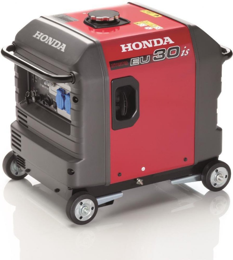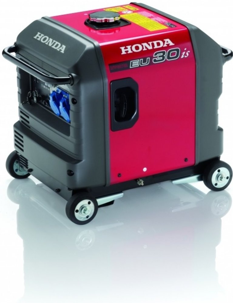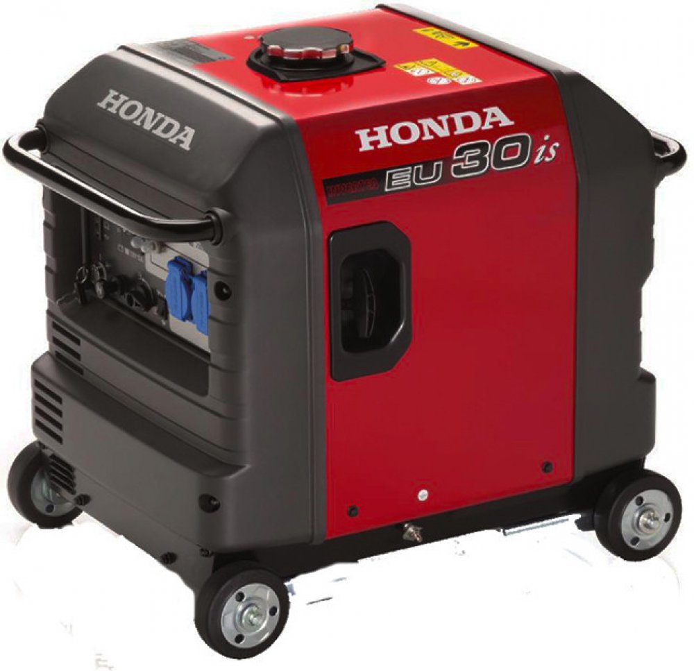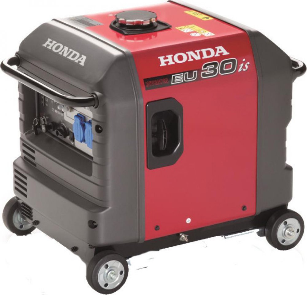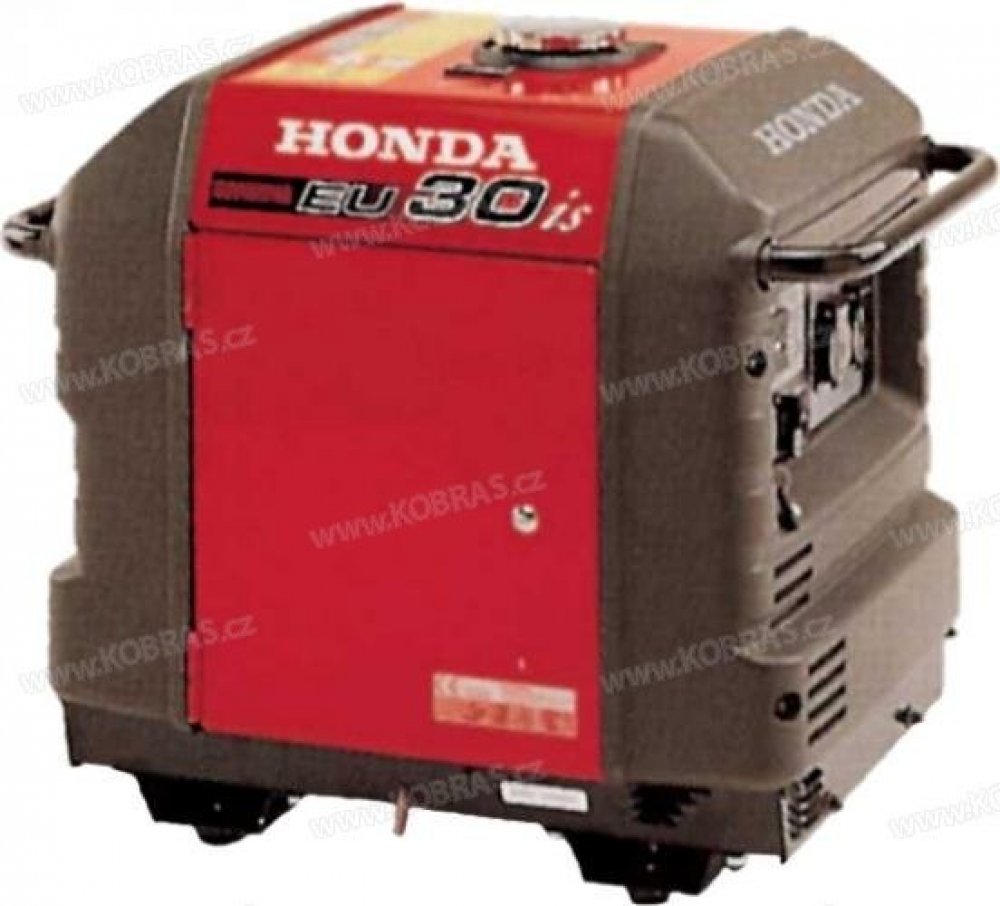 Snadno ovladatelná, lehká manipulace, kompaktní a mimořádně tiché elektrocentrály HONDA EU30iS poskytují mimořádně kvalitní elektrickou energii v nejvyšší možné kvalitě a výkonu 3 KW. Produkované elektrické napětí je stejně kvalitní nebo mnohdy ještě kvalitnější než je k dispozici ve veřejných rozvodných sítích. Umožňuje tak napájení velmi citlivých elektronických přístrojů jako je např. výpočetní technika a snižuje riziko případných poruch nebo poškození spotřebičů způsobených napájením nekvalitní a nestabilní elektrickou energií. Dále tuto elektrocentrálu můžete využít na kemping, karavaning, jachting, zahradu a domácnost, řemeslníci na stavbách, pojízdné autodílny, záchranné složky, filmování a fotografování, záložní zdroje do kancelář, osvětlení. Výkonný alternátor pohání profesionální průmyslový motor řady GX 200 s elektrickým startérem. Motor nastartujete otočením klíčku zapalování jako v automobilu. Kompaktní rozměry v sobě ukrývají "High-Tech" invertorovou techniku, která umožnila "boxu", vážícímu cca 61 kg produkovat 230V / 50Hz v té nejvyšší možné kvalitě a výkonu 3 KW.Tyto lehké a snadno přenosné elektrocentrály s velmi úsporným provozem disponují zvukově izolovanou kapotáží, doplněnou moderním a výkonným tlumičem pro snížení provozního hluku na minimální možnou úroveň. Díky použití moderních a lehkých materiálů, jako je např. hořčík, je hmotnost těchto elektrocentrál snížena na minimum. Vzhledem k hmotnosti je do rámu elektrocentrály integrován manipulační kolový podvozek se sklopnou ergonomickou rukojetí a umožńuje tak snadnou manipulaci. Ovládání elektrocentrály je velice snadné a jednoduché. Na ovládacím panelu elektrocentrály naleznete dvě zásuvky Schuko (16A 230V) s tepelnými jističi, také zásuvku pro 12V, 8,3A s tepelnou pojistkou, kontrolku chodu (zelená) a mazání (červená), kontrolku přetížení (červená) a přepínač režimu automatu ovládání motoru ECO-THROTTLE