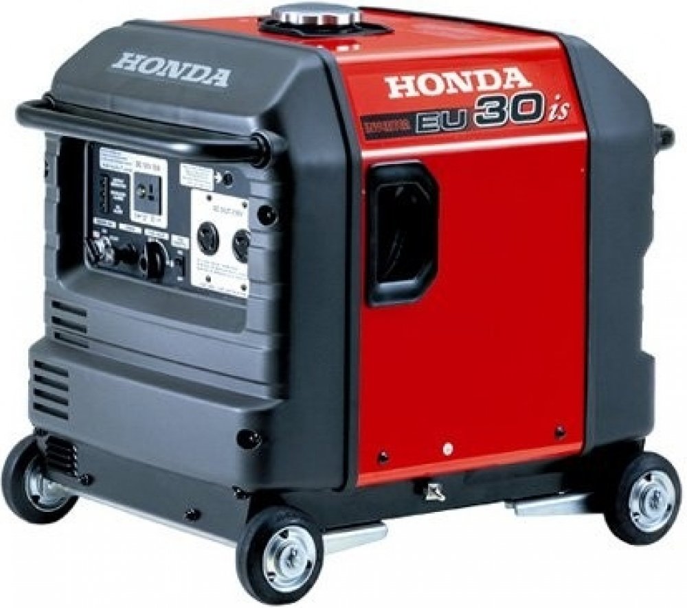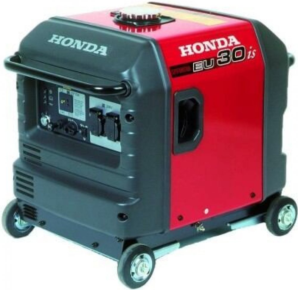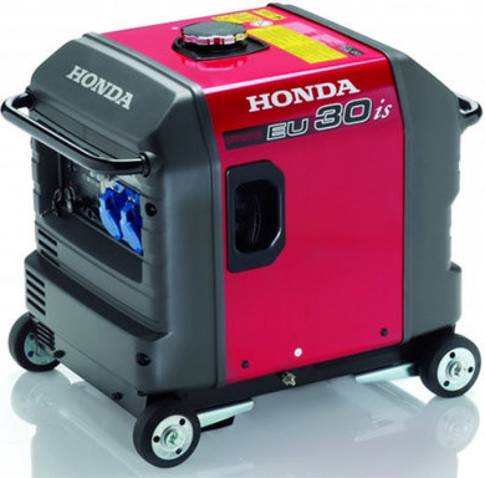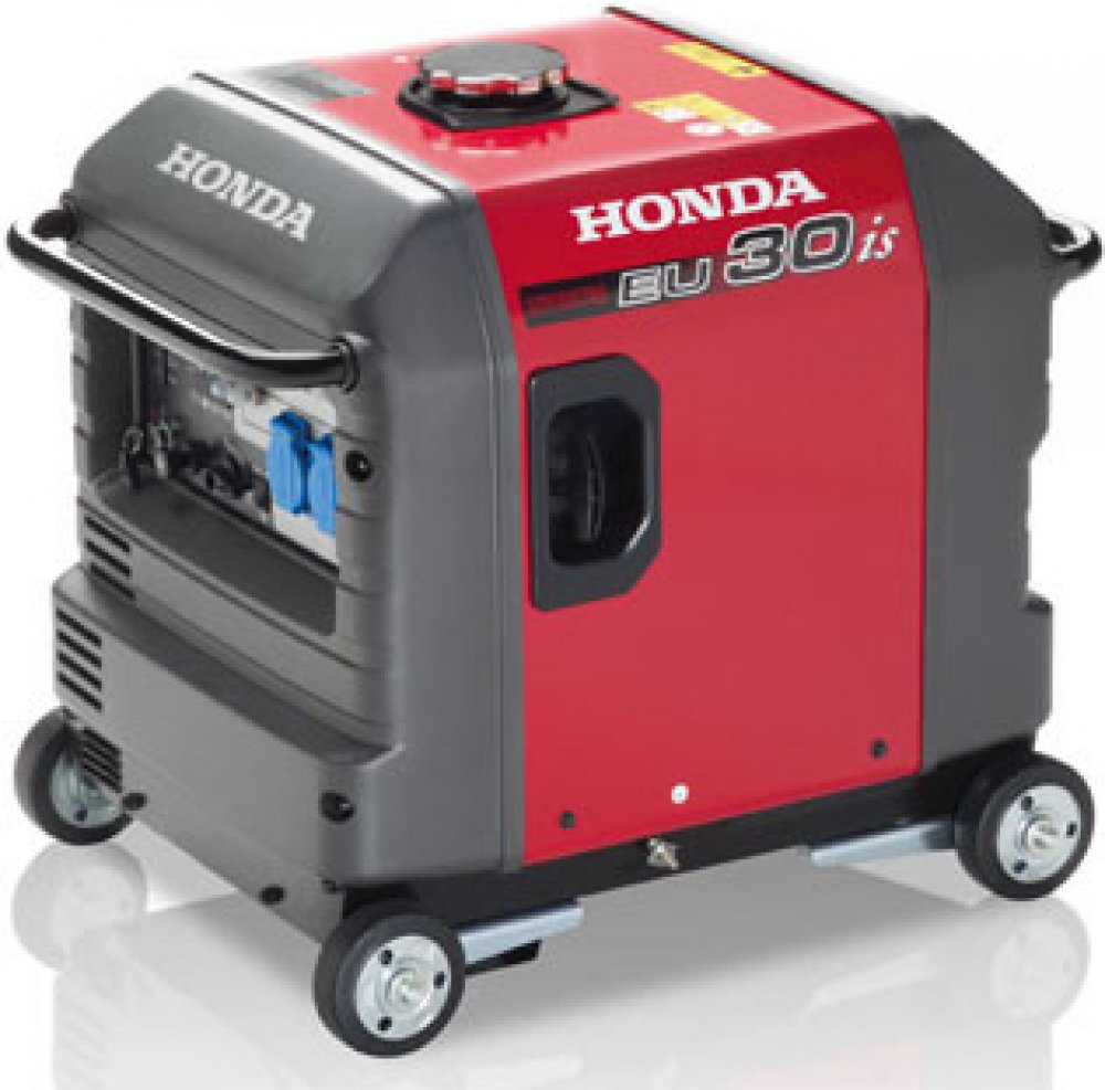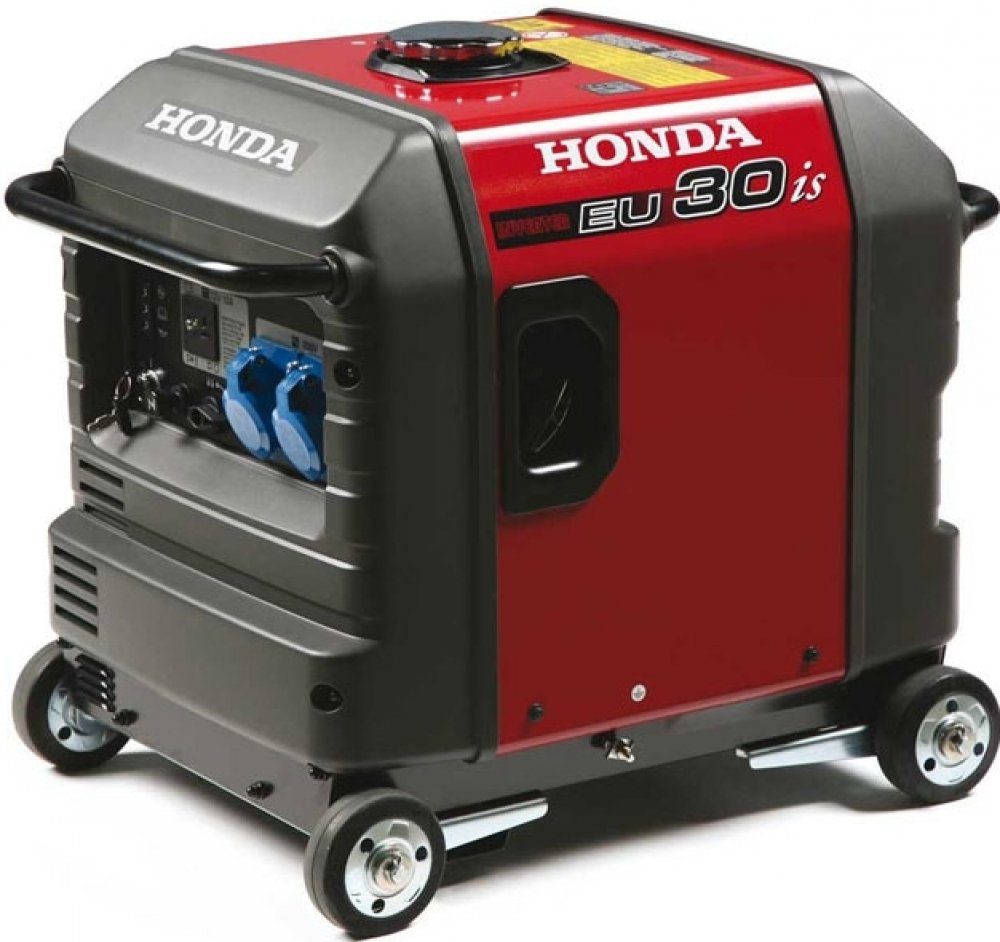 Snadno ovladatelná, lehká manipulace, kompaktní a mimořádně tiché elektrocentrály HONDA EU30iS poskytují mimořádně kvalitní elektrickou energii v nejvyšší možné kvalitě a výkonu 3 KW. Produkované elektrické napětí je stejně kvalitní nebo mnohdy ještě kvalitnější než je k dispozici ve veřejných rozvodných sítích. Umožňuje tak napájení velmi citlivých elektronických přístrojů jako je např. výpočetní technika a snižuje riziko případných poruch nebo poškození spotřebičů způsobených napájením nekvalitní a nestabilní elektrickou energií. Dále tuto elektrocentrálu můžete využít na kemping, karavaning, jachting, zahradu a domácnost, řemeslníci na stavbách, pojízdné autodílny, záchranné složky, filmování a fotografování, záložní zdroje do kancelář, osvětlení. Výkonný alternátor pohání profesionální průmyslový motor řady GX 200 s elektrickým startérem. Motor nastartujete otočením klíčku zapalování jako v automobilu. Kompaktní rozměry v sobě ukrývají "High-Tech" invertorovou techniku, která umožnila "boxu", vážícímu cca 61 kg produkovat 230V / 50Hz v té nejvyšší možné kvalitě a výkonu 3 KW.Tyto lehké a snadno přenosné elektrocentrály s velmi úsporným provozem disponují zvukově izolovanou kapotáží, doplněnou moderním a výkonným tlumičem pro snížení provozního hluku na minimální možnou úroveň. Díky použití moderních a lehkých materiálů, jako je např. hořčík, je hmotnost těchto elektrocentrál snížena na minimum. Vzhledem k hmotnosti je do rámu elektrocentrály integrován manipulační kolový podvozek se sklopnou ergonomickou rukojetí a umožńuje tak snadnou manipulaci. Ovládání elektrocentrály je velice snadné a jednoduché. Na ovládacím panelu elektrocentrály naleznete dvě zásuvky Schuko (16A 230V) s tepelnými jističi, také zásuvku pro 12V, 8,3A s tepelnou pojistkou, kontrolku chodu (zelená) a mazání (červená), kontrolku přetížení (červená) a přepínač režimu automatu ovládání motoru ECO-THROTTLE