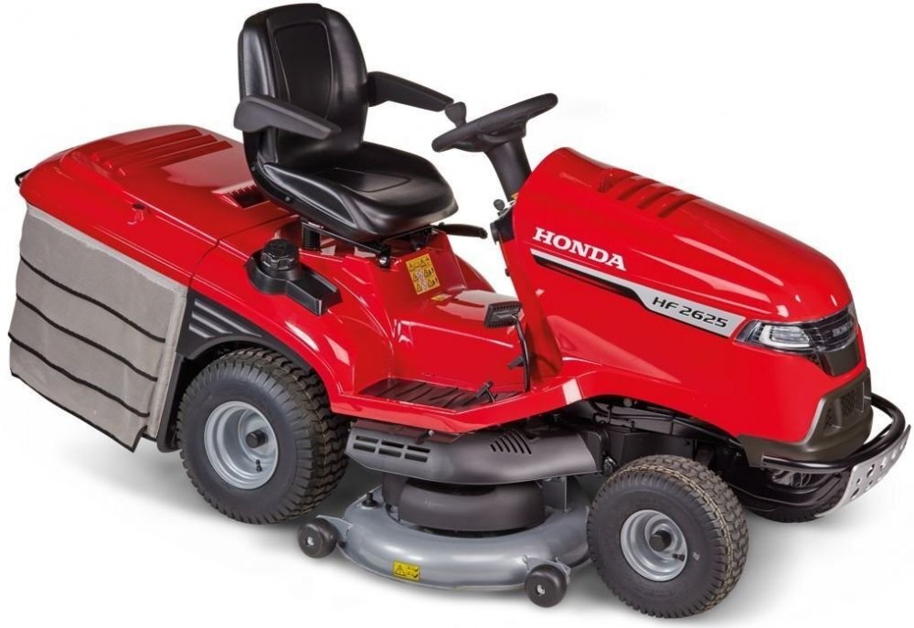 Honda HF 2625 HT: luxusní provedení nejvetšího a nejvýkonnejšího modelu v nabídce zahradních traktoru trídy "Premium" s elektrickým ovládáním sberného koše, plynule promenným hydrostatickým pojezdem, 5-stupnovým tempomatem, otevrenou žací komorou s podpurnými ventilátory, silným "PROFI" dvouválcem - integrovaným mulcovacím systémem.