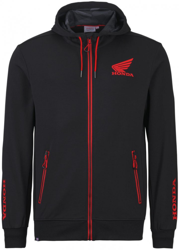 Pohodlná a stylová mikina na zip s logem a červenými detaily z kolekce Honda 2026.