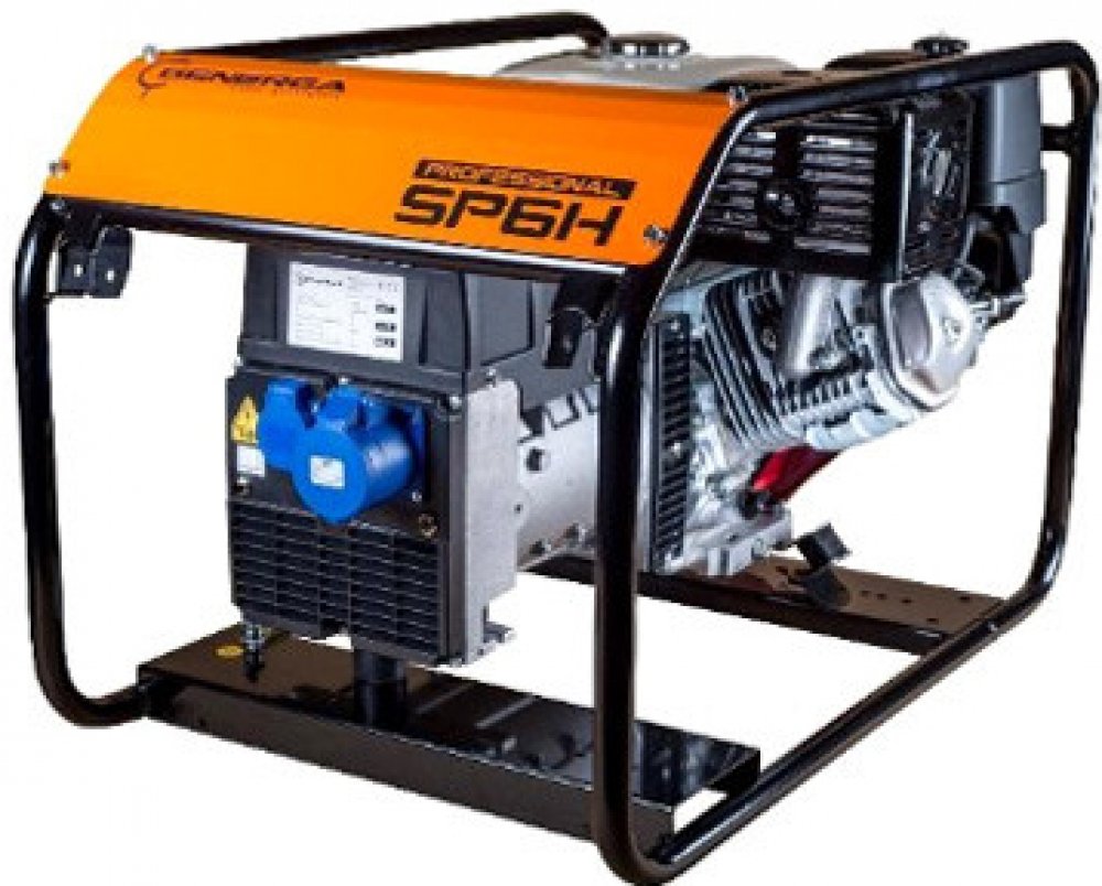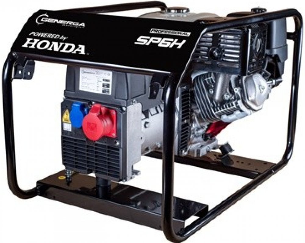 Elektrocentrála SP 6 H: model velké, jednofázové elektrocentrály s regulací výstupu kondenzátorem. Výkonný alternátor pohání profesionální motor řady GX s lehkým startem a to vše ukotveno v pevném a odolném ocelovém rámu.