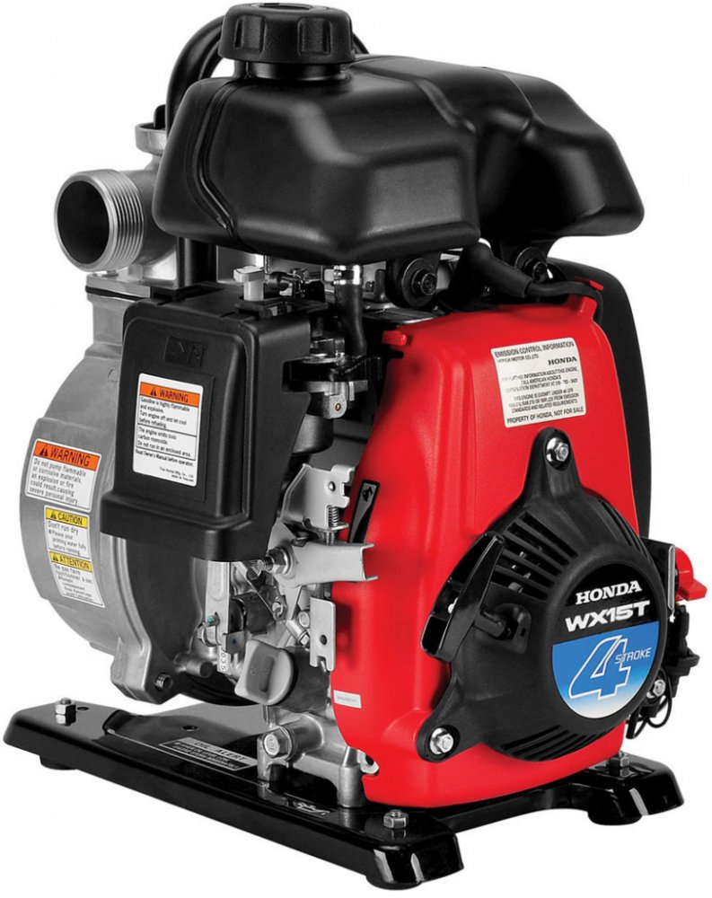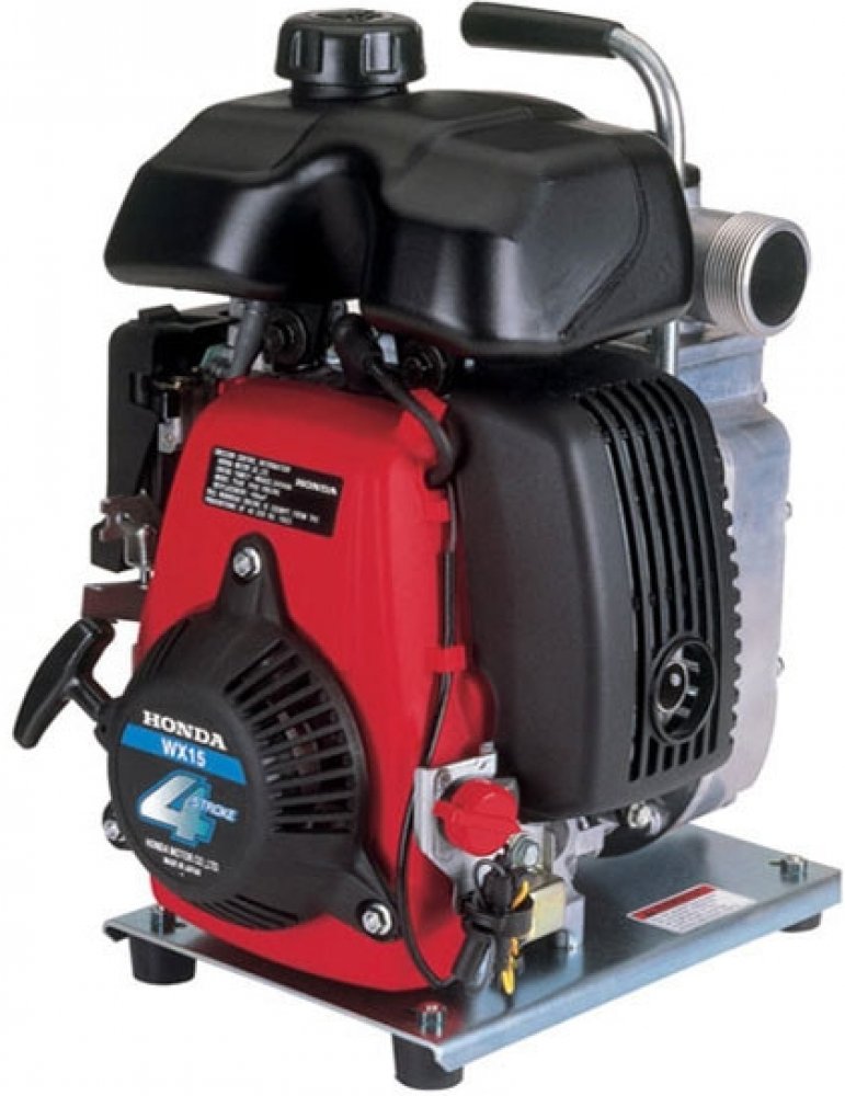 Lehké motorové miničerpadlo HONDA WX 15: model druhého nejmenšího motorového vodního čerpadla v nabídce. Patentovaná technologie mini 4-taktního motoru umožnila Hondě vyrobit kompaktní a lehké čerpadlo malých rozměrů, ale vysokého výkonu s průtokem až 240 l/min a celkovým výtlakem až 40 m.