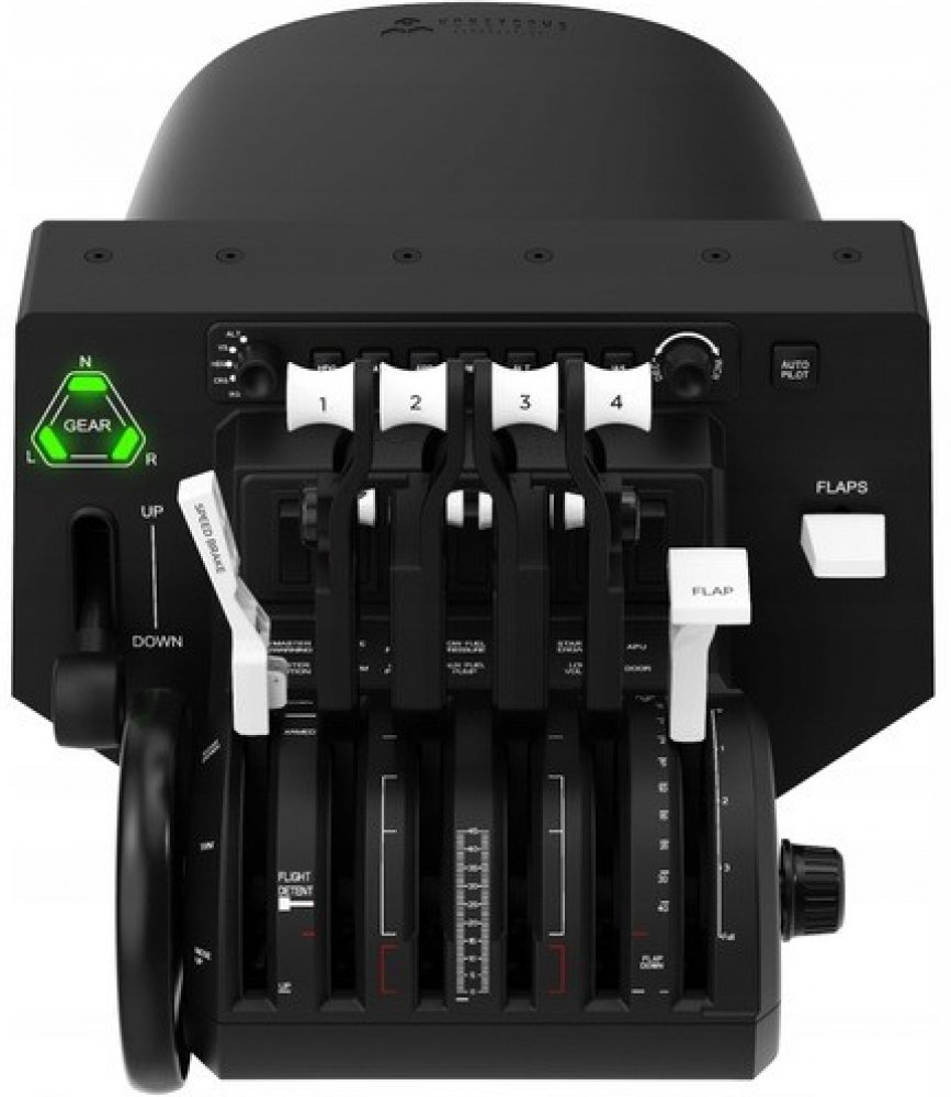 Honeycomb Bravo Throttle Quadrant pro letecké simulátory představuje univerzálně použitelný systém kokpitu "all-in-one". Umožňuje konfigurace od malých jednomotorových letadel až po velká čtyřmotorová. Všechny potřebné páky pro jednotlivé konfigurace jsou součástí balení. Příslušenství podporuje rozličné systémy v kokpitu, jako je autopilot, spínač převodovky, přístrojovou desku nebo klapky. Přís...