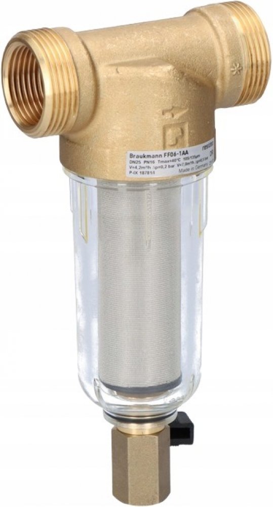Jemné proplachovatelné filtry FF06 zajišťují nepřetržitou dodávku filtrované vody. Jemný filtr redukuje množství cizích částic ve vodě, například úlomků rzi, konopných vláken nebo písečných zrnek. Filtry FF06 lze použít v systémech se zařazeným redukčním ventilem nebo bez něho. Nečistoty, usazené na dně filtrační nádoby, lze snadno odstranit.