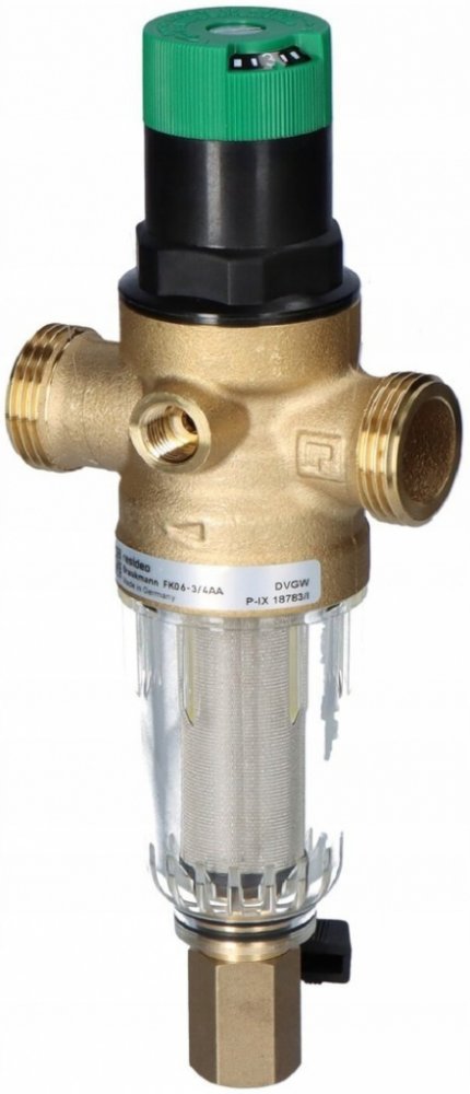 Jemné proplachovatelné filtry FK06 zajišťují nepřetržitou dodávku filtrované vody. Jemný filtr redukuje množství cizích částic ve vodě,například úlomků rzi,konopných vláken nebo písečných zrnek. Nečistoty,usazené na dně filtrační nádoby,lze snadno odstranit. Vestavěný redukční ventil chrání vodovodní potrubí a připojené spotřebiče před nadměrným mechanickým namáháním a navíc sníží spotřebu vody. Nastavený výstupní tlak zůstává konstantní nezávisle na kolísání vstupního tlaku. Snížení pracovního tlaku a udržení na konstantní hodnotě navíc zajistí nízkou hlučnost vodovodní instalace.