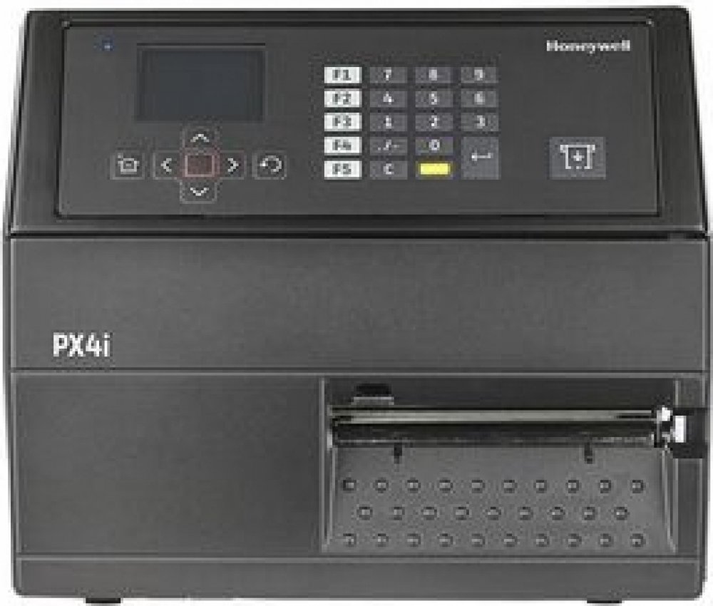 label printer, thermal transfer, 12 dots/mm (300 dpi), media width (max.): 120 mm, print width (max.): 110 mm, speed (max.): 300 mm/s, multi-interface (RS232, USB, Ethernet), RAM: 256 MB, Flash: 128 MB, peeler, liner take-up spindle, Label Taken Sensor, display (colour), real time clock, incl.: power cable