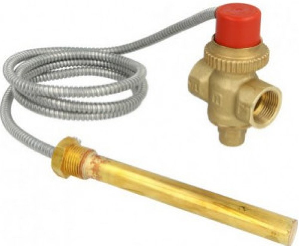 Ventil proti přetopení TS131 • pro otopné soustavy dle EN 12828 • přímočinný regulátor, který je řízen teplotou výstupní vody ze zdroje tepla • při teplotě média 95°C otevírá a odpouští vodu z výměníku tepla nebo zásobníku TUV a tím jej chrání před překročením maximální teploty • velikost připojení: 3/4" • s ponornou jímkou