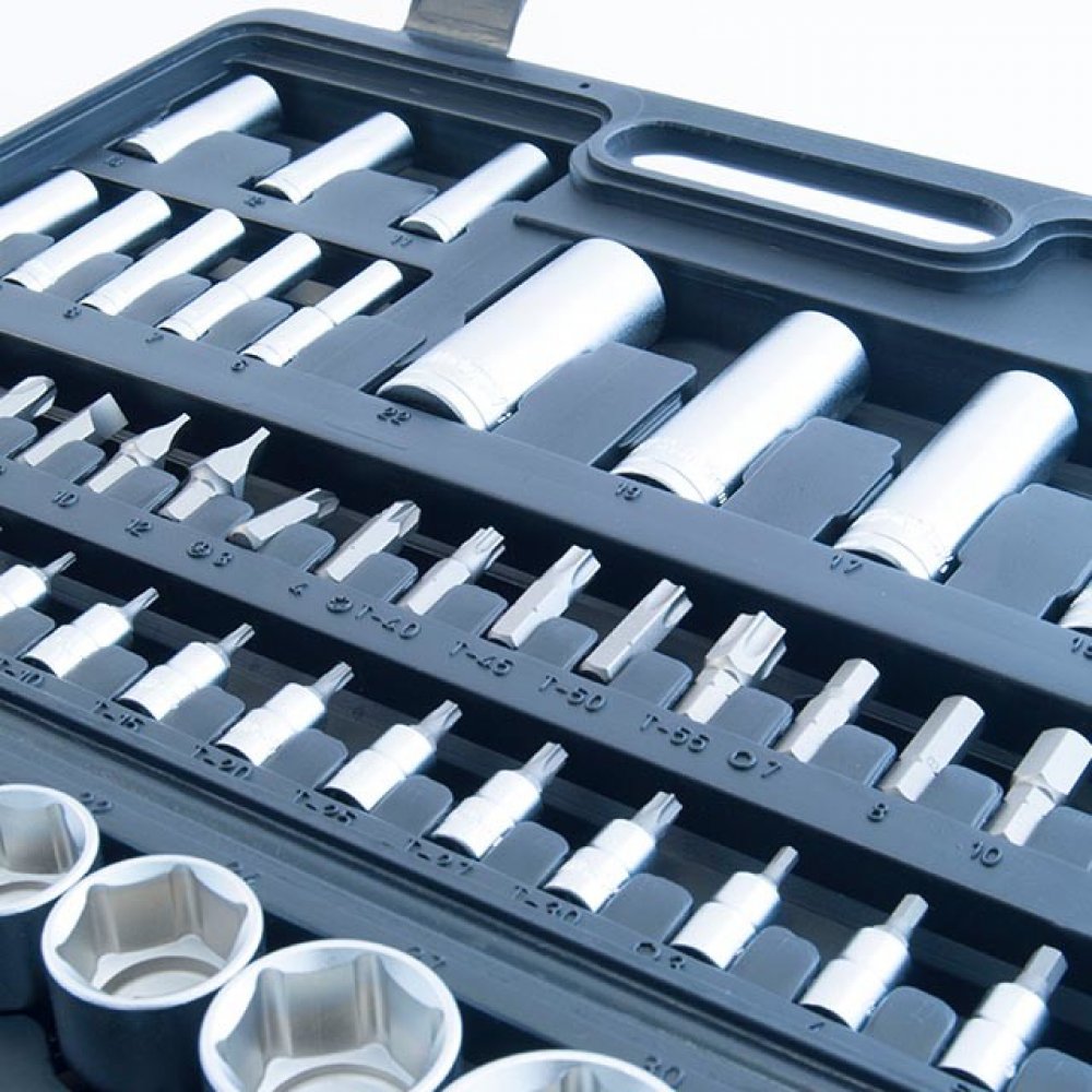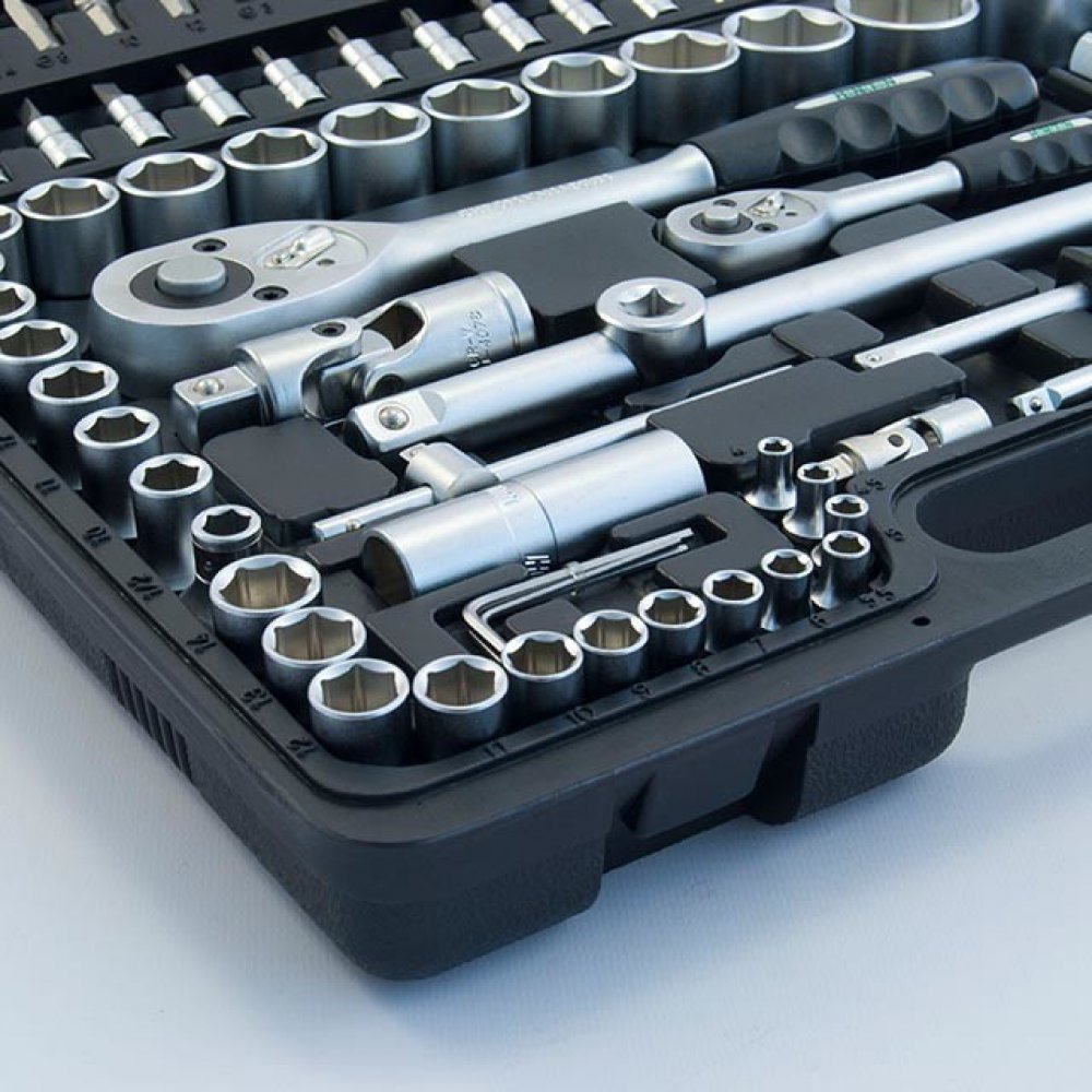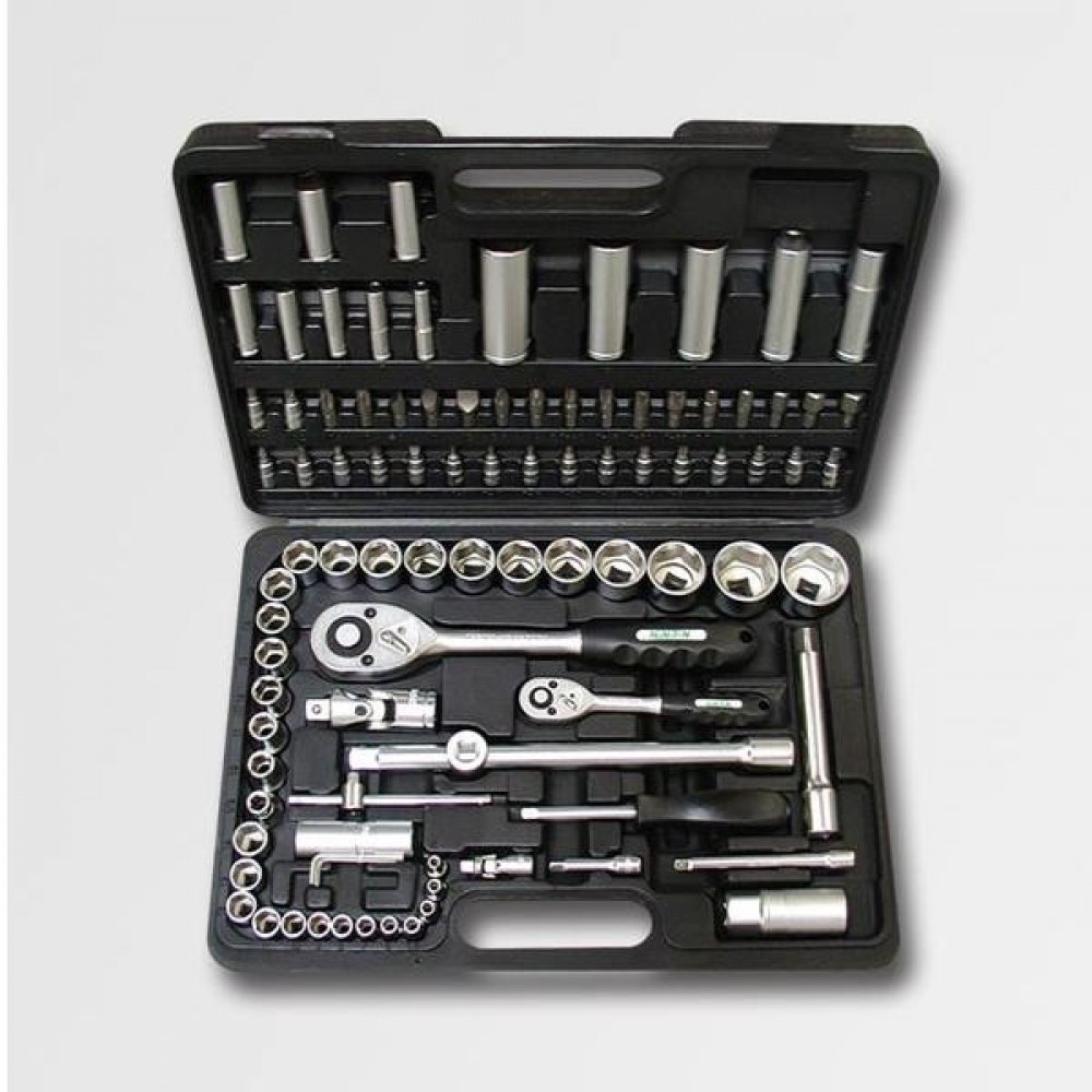 Její kompletní složení hlavic 1/4" a 1/2", bitů a nástavců z ní dělá nenahraditelného pomocníka. Všechny části jsou vyrobeny z houževnané CrV oceli, která je certifikovaná strojírenským zkušebním ústavem. Výbava: Velmi dobře kombinovaná sada v přehledném kufru. Zástrčné šroubovací hlavice PH, PL, Imbus a TRX. Klíče na svíčky 16 a 21 mm. Technologie: Ráčny s přepínací páčkou a uvolňovacím tlačítkem. Materiál: Nejpoužívanější rozměry 1/4" a 1/2" hlavic z kvalitní chrom-vanadiové oceli.