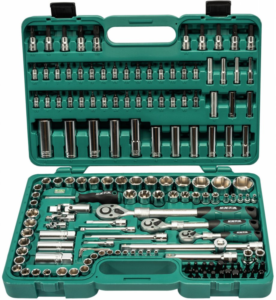 Sada hlavic 1/4"-3/8"-1/2" 155 dílů je kompletní a profesionální řešení pro autoservisy a dílny, které potřebují široký výběr nářadí v metrických rozměrech. Tato ucelená sada zahrnuje tři různé velikosti hlavic (1/4”, 3/8” a 1/2”) s bohatým příslušenstvím, jako jsou bity, imbusové a torxové hlavice, prodloužení, kardany, klíče na svíčky a teleskopické ráčny. Díky této sadě zvládnete různé opravy a montáže bez nutnosti hledání dalších nástrojů. Hlavice pokrývají velikosti od 4 mm až po 32 mm, což poskytuje flexibilitu pro širokou škálu úkolů. Navíc teleskopické ráčny usnadňují práci v hůře dostupných místech.