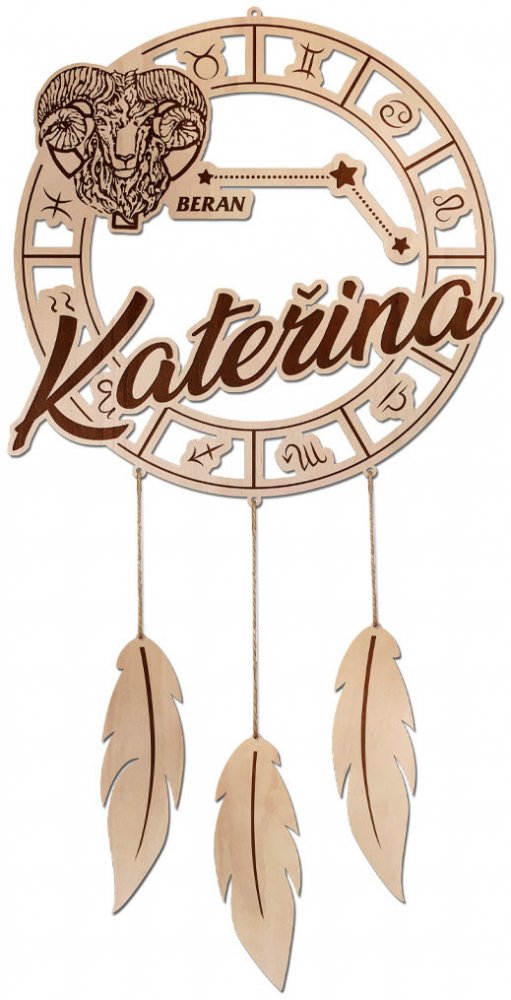 Originální dřevěná dekorace s vlastním jménem a znamením Průměr lapače 25 centimetrůNáš dřevěný lapač má průměr kruhu 25 centimetrů a celý výrobek je vysoký 50 centimetrů. Vyrobený je z bukového dřeva o síle 4 mm. Je tedy zároveň lehký i dostatečně pevný. Vaše objednávka Prvním krokem je vytvoření objednávky. Do poznámky stačí zadat potřebné údaje pro grafika, aby mohl vytvořit návrh. Schválení návrhu Pošleme vám návrh k odsouhlasení e-mailem a vy nám ho potvrdíte nebo napíšete požadované změny. Odesíláme k vám Po schválení návrhu se ihned pouštíme do výroby. Zásilka bude už brzy u vás. Vlastní jméno i znamení zvěrokruhuLapače snů vyrábíme v naší dílně na zakázku (a při tom může být u vás již za 2 dny), proto není problém si zvolit jakékoliv jméno a znamení zvěrokruhu. Lapač vyrobíme na míru a co nejrychleji zašleme k vám.