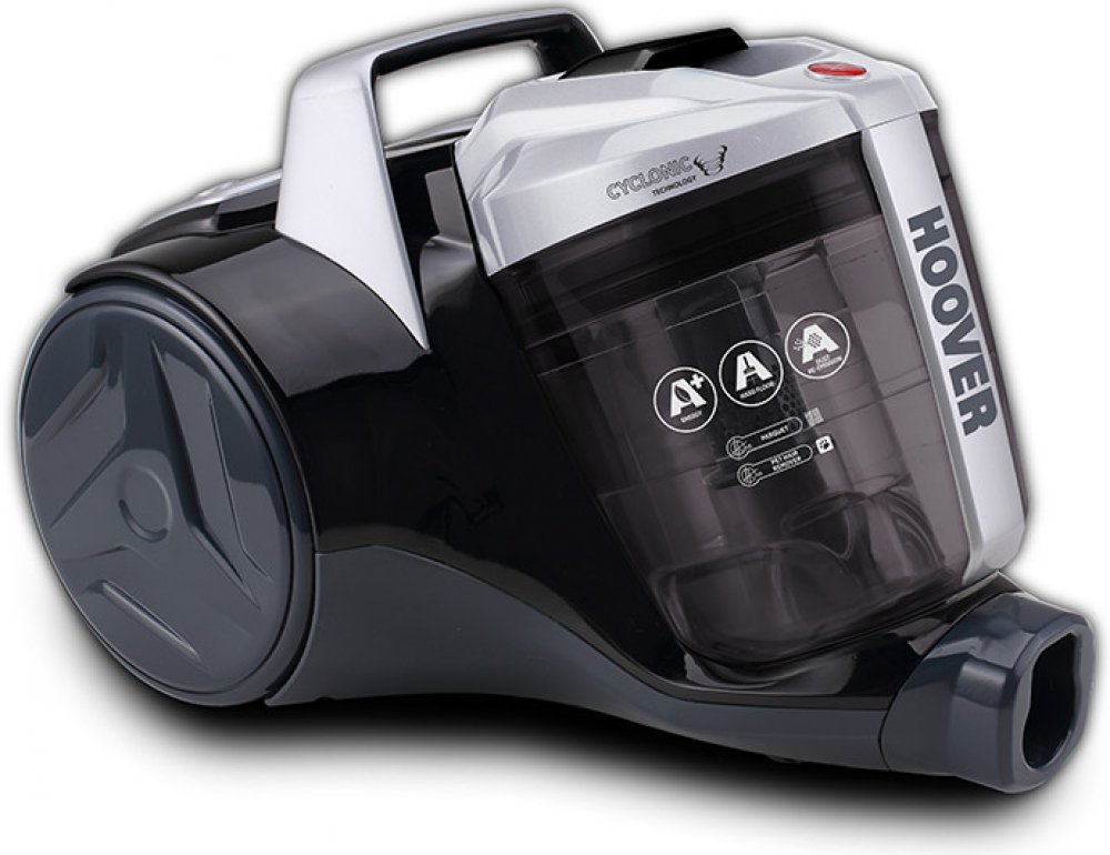 Bezsáčkový vysavač Hoover vhodný pro vysávání koberců i tvrdých podlah. Energetická třída A+, teleskopické trubky.