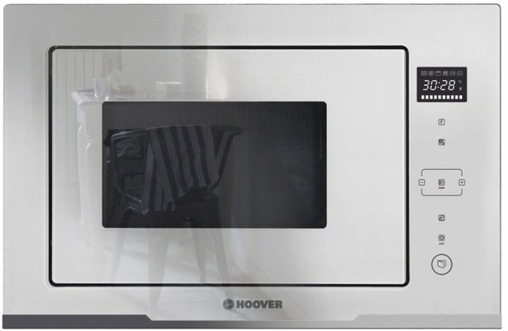Vestavná mikrovlnná trouba s grilem Hoover HMGV 28 GDFW v bílém provedení. Maximální mikrovlnný výkon 900W, výkon grilu 1000W, průměr otočného talíře 31.5 cm, vnitřní objem 28l.