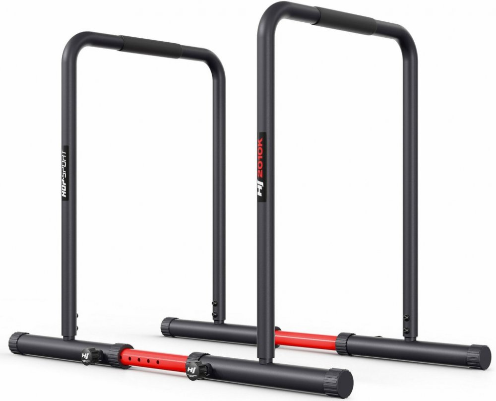 Tréninkové bradla HS-2010k představují stabilitu, sílu a přesnost v jednom setu – maximální zatížení až 500 kg umožňuje i ty nejintenzivnější tréninky.Nastavitelná bradla na dipy byla navržena s ohledem na dlouhou životnost. Konstrukce zaručuje jistý úchop a možnost přesného přizpůsobení zařízení vašim potřebám. Nastavitelná výška a šířka umožňují použití bradel jak pro klasické kliky, tak pro kalistenický trénink. Pro použití v domácí posilovně. Výjimečná stabilitaStabilita zařízení je základem efektivního a bezpečného tréninku a v případě bradel HS-2010k se můžete spolehnout na maximální podporu. Díky robustní ocelové konstrukci s průměrem hlavní trubky 38 mm a tloušťkou stěny 1,5 mm se zařízení neprohýbá pod zátěží intenzivních cvičení. Maximální zatížení až 500 kg z něj činí volbu jak pro nadšence kalisteniky, tak pro osoby trénující silově s využitím zátěže. Regulace výšky a šířkyBradla HS-2010k můžete nastavit libovolně – výšku ve dvou úrovních (80 nebo 94 cm) a šířku základny až v sedmi variantách (od 82 do 101 cm), po 3 cm. To je obrovská výhoda, pokud sdílíte vybavení s ostatními členy domácnosti, trénujete různé partie těla nebo chcete zpestřit tréninky. Bezpečnost při cvičeníAť už provádíte klasické dipy nebo L-sity – protiskluzové úchyty a nožičky vám zajistí pevný úchop a stabilitu na jakémkoli povrchu. Trénujte bez obav z klouzání zařízení nebo ztráty kontroly – bradla HS-2010k vám umožní soustředit se na techniku a pohyb. Kompaktní skladování a rychlá montážDíky kompaktní konstrukci a snadnému rozložení zabírají bradla málo místa a vejdou se i do malého bytu, garáže nebo na terasu. Bradla na dipy a kliky HS-2010k složíte a rozložíte během několika okamžiků. Intuitivní systém upevnění umožňuje rychlou přípravu cvičebního stanoviště bez použití speciálních nástrojů. To šetří čas a energii – můžete začít trénovat, kdykoli se vám zachce. Pro každou úroveň pokročilostiAť už s posilováním teprve začínáte, nebo cvičíte už léta, nastavitelné bradla na dipy HS-2010k se osvědčí ve vašem tréninkovém plánu. Jsou skvělé pro ty, kteří cvičí kalisteniku nebo street workout. Na bradlech můžete cvičit hrudník a tricepsy, hluboké svaly a břicho, provádět klasické kliky a zdokonalovat rovnováhu a koordinaci.