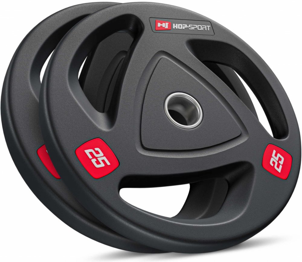 Sada olympijských závaží 2x25kg je vyrobena z pevné litiny, potažena protiskluzovou gumou, která je zárukou ochrany podlahy a tlumení zvuku při pádu. Ocelový kroužek o průměru 51 mm zaručuje vysokou odolnost olympijských kotoučů při jejich časté výměně na hřídeli/tyči. Olympijská závaží o hmotnosti 25 kg mají vytištěnou informaci o hmotnosti, což usnadňuje rychlou identifikaci a změnu závaží. Ergonomické drážky s jedinečným tvarem poskytují nejen bezpečnost a pohodlí při přenášení, ale také všestranné použití (jako např. crossfit, kettlebell atd.) Univerzální průměr Otvor o průměru 51 mm je vhodný pro všechny olympijské tyče o průměru 50 mm. Je chráněn nerezovým kroužkem, zaručujícím vysokou odolnost kotoučů při častém nasazování a vyjímání z tyče. Pevné zpracování Olympijská závaží jsou vyrobena z plné litiny, díky čemuž jsou odolná vůči korozi a všem druhům poškození. Pro dodatečnou ochranu jsou tato závaží potažena protiskluzovou gumou, která je zárukou ochrany podlahy a tlumení zvuku při pádu. Průřez hmotnosti a velikostí V nabídce Hop-Sport naleznete olympijská závaží různých hmotností a velikostí. K dispozici jsou následující varianty hmotnosti: 1,25 kg, 2,5 kg, 5 kg, 10 kg, 15 kg, 20 kg, 25 kg. Lehčí závaží můžete použít na rozcvičku nebo aktivační trénink. Varianty se střední hmotností jsou ideální pro cvičení pro budování vytrvalosti. Na druhé straně vyšší váhové kategorie budou vhodné, chcete-li cvičit silový trénink zaměřený na budování svalů. Šikovné rukojeti Olympijská závaží mají speciální rukojeti, které slouží k přenášení kotoučů a jejich pohodlnému nasazení na tyč. Nic vám však nebrání použít je namísto jiných tréninkových doplňků. Lehčí olympijská závaží (1,25 kg, 2,5 kg a 5 kg) - můžete je použít místo činek při zdvihech a tlacích. Větší (10-25 kg) lze použít jako náhradu za kettlebell.
