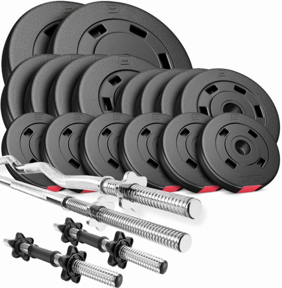 Sada Premium 75 kg s rovnou a jemně ohýbaných tyčí umožňuje komplexní trénink v oblasti kulturistiky. Obsahuje vysoce kvalitní cementové kotouče a profesionální tyče. Díky tomu jsou cvičení s nimi pohodlné a bezpečné. Sada obsahuje: cementové kotouče 10 kg - 2 ks cementové kotouče 5 kg - 4 ks cementové kotouče 2,5 kg - 4 ks cementové kotouče 1,25 kg - 6 ks hřídel 45 cm (průměr 30mm) - 2 ks rovná t...