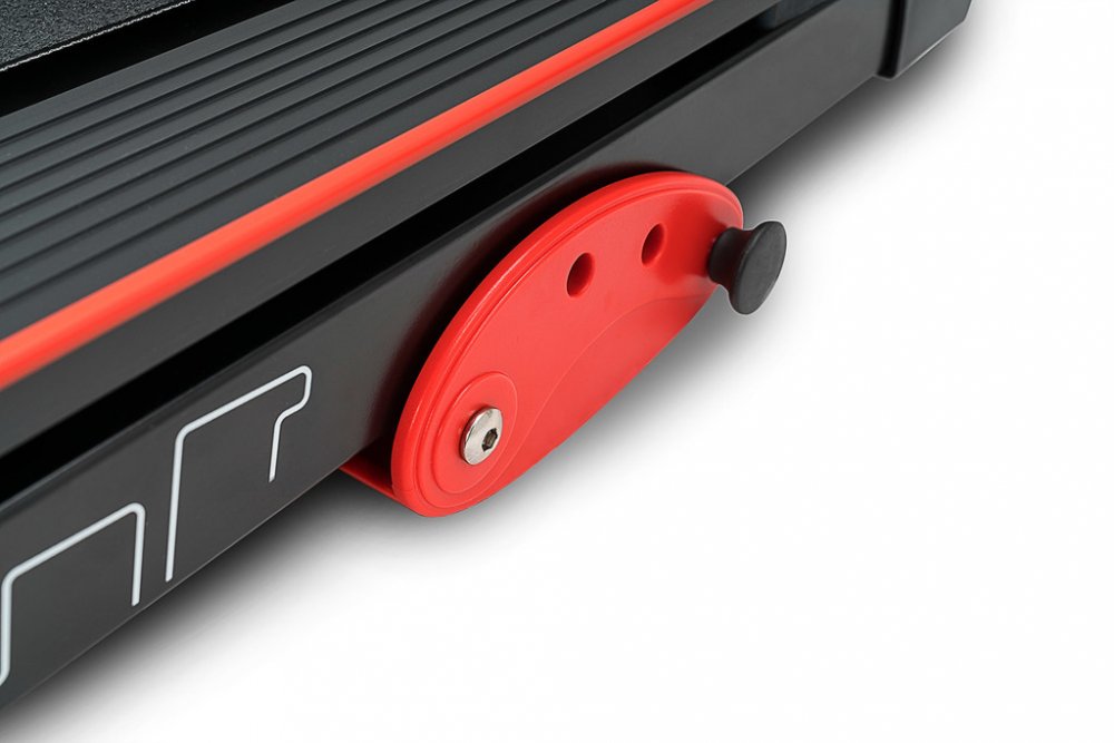 Domácí běžecký pás je vybaven držákem na láhev a transportními válečky, které zajišťují plnou mobilitu zařízení. Díky mechanismu skládání do svislé polohy zařízení nebude po tréninku zabírat hodně místa. Tento model je ideální běžecký pás do bytu. Skládací běžecký pás ušetří mnoho místa.