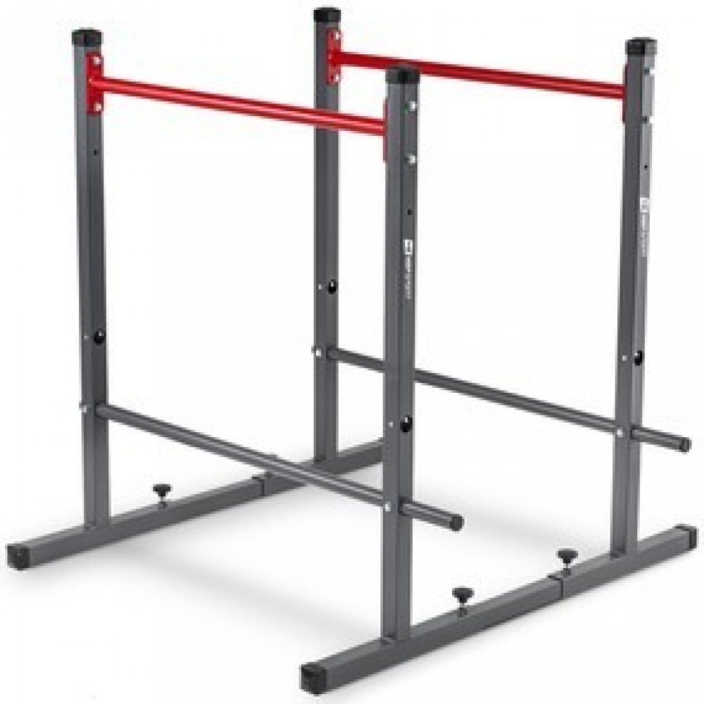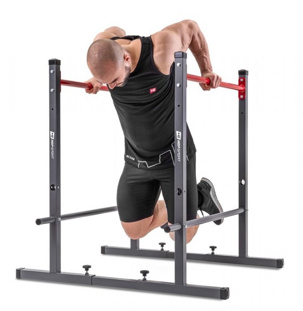Jednoduché a mimoriadne funkčné vybavenie pre domáce silové tréningy. Stacionárne bradlá HS-1010K s prídavnou spodnou tyčou vám umožňujú efektívne posilňovať a tvarovať svaly brucha, rúk a chrbta vykonávaním rôznych cvičení, ako sú švédskych klikov alebo zdvihaním nôh vo vise. Výhodou produktu je možnosť výškového nastavenia tyčí, výškového nastavenia spodného priečneho nosníka, ako aj šírky rozstupu bradiel. Súprava obsahuje sadu nástrojov pre vlastnú montáž.