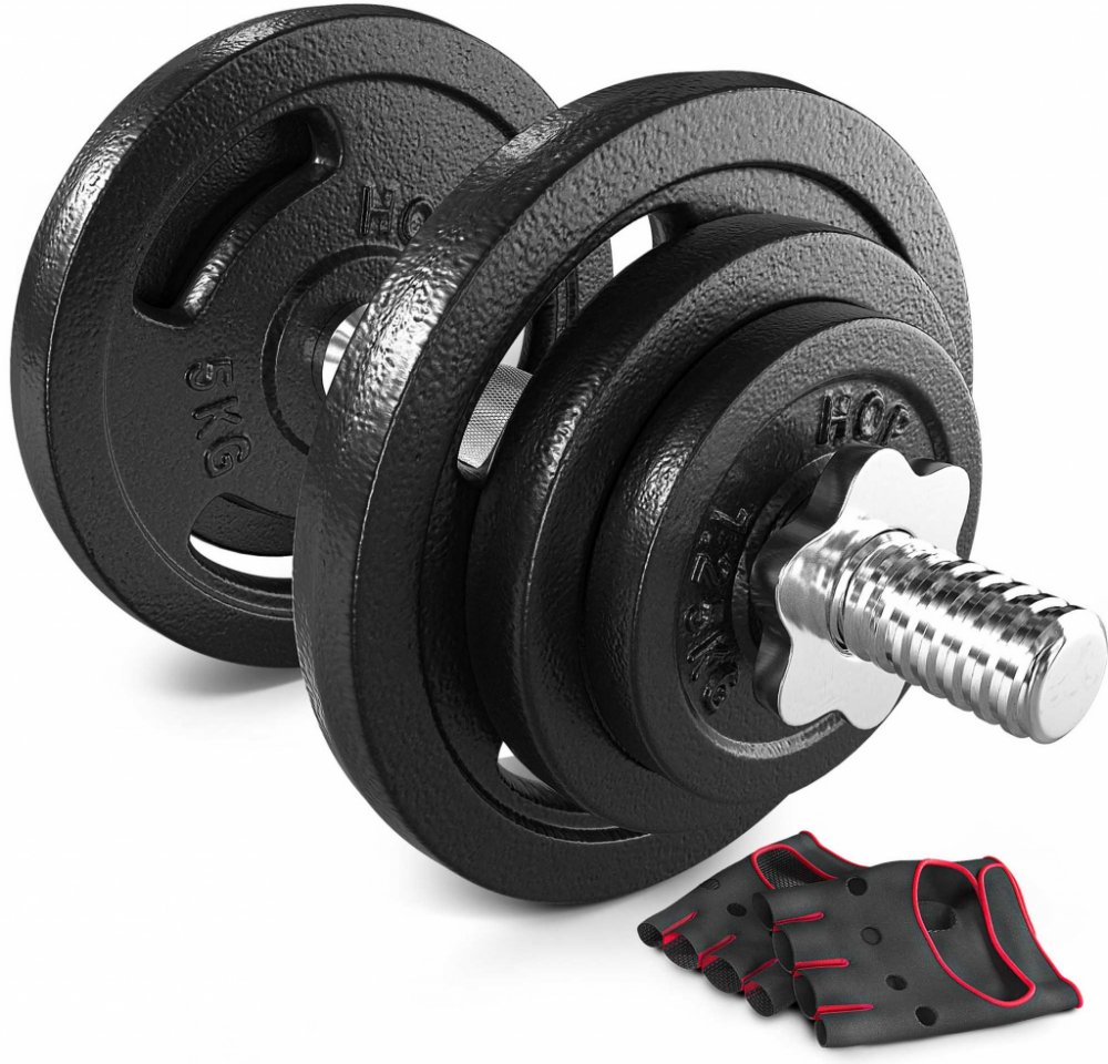 Pevná litinová činka značky Hop-Sport 1x20 kg s rukavicemi Vám pomůže zlepšit fyzický kondici a vybudovat svalovou hmotu horní části těla a rukou. Nabízená činka zahrnuje ocelový hřídel se závity a odolné litinové kotouče. Kromě toho je vybavena rukojetí, která zabraňuje sklouznutí činky z ruky během tréninku. Sada obsahuje: 1 x hřídel s délkou 40 cm, průměr 30 mm 2 x 5 kg litinové kotouče 2 x 2,5 kg litinové kotouče 2 x 1,25 kg litinové kotouče Neoprenové rukavice Grátis Cvičení s činkami Výhody cvičení s činkami: Zapojení do práce většího počtu svalů, jako např. při cvičení na zařízeních v posilovnách Různorodé tréninkové možnosti - díky litinovým činkám můžete provádět cviky v různých variantách Litinové kotouče Výhodou litinových kotoučů je jejich nepochybná životnost. Naše závaží jsou vyrobeny z vysoce kvalitní litiny, která zaručuje dlouhou životnost produktu při dlouhém a intenzivním používání. Masivní a odolné litinové kotouče se používají v nejznámějších posilovnách a fitness klubech. Díky přiměřené odolnosti vůči mechanickému poškození a modernímu designu jsou cvičení s nimi ještě příjemnější. Parametry kotoučů vyrobené z litiny práškové lakování vytištěné logo značky Hop-sport a hmotnosti kotoučů průměr otvoru 31 mm 5 kg - průměr 22 cm, tloušťka 27 mm 2,5 kg - průměr 16 cm, tloušťka 18 mm 1,25 kg - průměr 12 cm, tloušťka 17 cm Hřídel Sada zahrnuje jeden hřídel s precizní šroubovou svorkou, celková délka 40 cm. Výhody: závitové konce a svorky, rýhovaná rukojeť Tyto prvky zlepší každé posilování. Parametry hřídele Celková délka: 40 cm Průměr: 30 mm Délka uchopovací části: 12 cm Délka závitové části: 2 x 13 cm