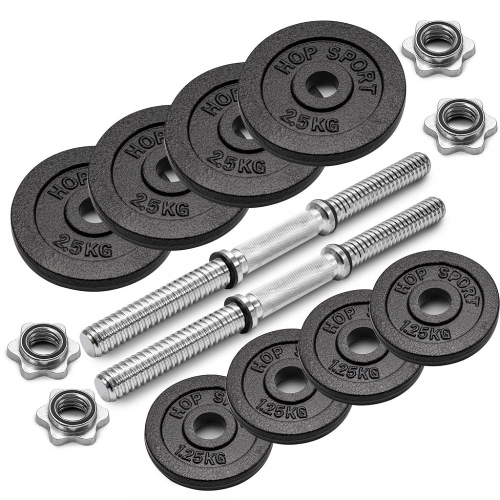 Sestava litinových činek 2 x 10 kg Chceš zlepšit svůj fyzický vzhled a vybudovat si svalovou hmotu horních částí těla a rukou? Bezpečné činky značky Hop-Sport o celkové hmotnosti 20 kg Ti pomohou získat očekávané výsledky bez nebezpečí úrazu.