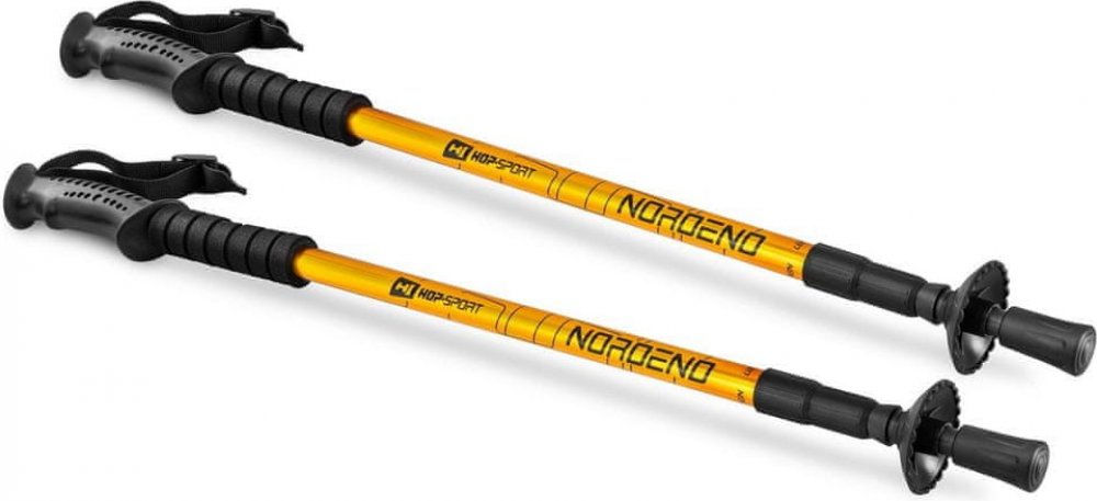 Trekingové hole jsou pomůckou, která bude užitečná nejen při rekreačních procházkách, ale i při náročnějších a delších turistiky. Hole poskytují vynikající oporu a ochranu při procházkách. Umožňují uvolnit páteř a díky možnosti podpory a lepší stability v náročných částech trasy zvyšují bezpečnost. Jsou vyrobeny z lehkého hliníku. Mají profilovanou rukojeť a pohodlné držení na zápěstí. Hole mají vnitřní systém tlumení nárazů, který tlumí všechny vibrace a nárazy a optimálně chrání zápěstí a klouby. Univerzální trénink Nordic walking je stále oblíbenější formou aktivity, při které je zapojeno do práce až 90% všech svalů těla. Nordic walking je možné praktikovat bez ohledu na věk nebo fyzickou kondici, téměř za jakýchkoliv podmínek. Nízké zatížení kloubů při nordic walking je doporučeno i pro obézní lidi. Nezhoršuje stav bolestivých kloubů, zejména kolen. Kromě toho během nordic walking spalujete v průměru o 20 až 40% více kalorií v porovnání s běžnou chůzí. Hole také pomáhají udržovat lepší držení těla, rovnováhu a stabilitu při chůzi. Za každých podmínek Sada obsahuje speciální gumové koncovky a kryt. Koncovky chrání hroty před poškozením při chůzi po tvrdých površích (chodník, asfalt, kameny) a zaručují lepší tlumení. Jsou vyrobeny z odolného materiálu. Speciální kryt umožňuje snadné přenášení a skladování holí, jakož i jejich ochranu před povětrnostními podmínkami a zničením. Systém Anti-shock Hole jsou vybaveny vnitřním systémem na tlumení vibrací a otřesů. Díky tomu si během tustiky můžeme být jisti, že Vaše zápěstí nebudou poraněné a nebudete cítit otřesy způsobené nerovným povrchem. Uvnitř hole je pružina, která ve správné poloze poskytuje tlumení. Zapínání a vypínání funkce proti nárazu se provádí dotažením a uvolněním tyče ve střední části, dokud neuslyšíte cvaknutí. Utažením - funkci zapneme, uvolněním - funkci vypneme. Pohodlí používaní Hole jsou vybaveny profilovanými rukojetěmi. Hole Nordend poskytují možnost uchopení rukou na rukojeti, které usnadňuje manipulaci s holemi při chůzi, zabraňuje jejich ztrátě, zvyšuje bezpečnost a umožňuje snadný přenášení. Nastavení délky Díky teleskopické konstrukci lze libovolně nastavovat délku holí v závislosti na výšce uživatele nebo zvolené trasy. Velmi dobře čitelná měřítko a precizně vyrobený systém aretace délky usnadňují nastavení jejich rozměrů. Blokáda zaručuje stabilitu. Rozměry: Délka složené hole: 65 cm, Maximální délka: 135 cm.