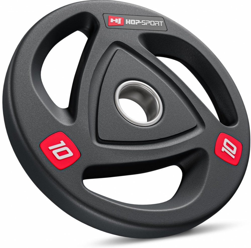 Pogumovaná závaží Hop-Sport jsou vysoce kvalitní olympijské kotouče. Tři velké ergonomické drážky s jedinečným tvarem poskytují nejen bezpečnost a pohodlí při přenášení, ale také všestranné použití (jako např. crossfit, kettlebell atd.). Precizní litinová výplň je potažena pevnou vrstvou odolné pryže, která je zárukou ochrany podlahy a tlumení zvuku při pádu.Parametry kotoučů Litinová výplň potažená gumou Logo značky Hop-Sport Atraktivní moderní design Barva: černý antracit Zvýšená odolnost proti poškození vysoká životnost bezpečné uchopení Kompatibilní s olympijskými tyčemi o průměru 50 mm Univerzální použitíOlympijské závaží zaručují: Efektivní trénink celého těla Trénink stabilizačních svalů Posílení rovnováhy, vytrvalosti a síly Zlepšení pohybové koordinace Zlepšení rychlostiPoužité materiály Vnější materiál: nerecyklovaného guma - elastická, pevná, protiskluzová, bez silného zápachu Tloušťka gumy: 3-5 mm, tloušťka vrstvy závisí od náchylnosti kotouče k nárazům a poškození Vnitřní materiál: litina Prstenec z nerezavějící oceli ve středu kotouče chrání před poškozením, zajišťuje přesné uložení a plynulé naložení kotouče na tyč / hřídelUniverzální průměrKotouč o průměru otvoru 51 mm je vhodný pro všechny olympijské tyče o průměru 50 mm. Je chráněn nerezovým kroužkem, zajišťujícím vysokou odolnost destiček pro častou montáž a vyjímání z tyče.Rozměry: hmotnost: 10 kg průměr kotouče: 32 cm tloušťka: 38 mm průměr otvoru: 51 mm