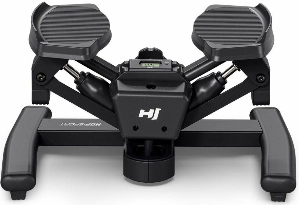 Poznejte stepper HS-060S Snash, který v sobě spojuje funkce klasického a twist stepperu. Jde o kompaktní zařízení 2 v 1, díky němuž posílíte nohy, hýždě a břicho, zlepšíte kondici a spálíte kalorie. V klasickém režimu provádíte jednoduché kroky zaměřené na nohy a hýždě, zatímco ve šikmém (rotačním) režimu zapojujete také boky a šikmé břišní svaly, takže trénink je dynamičtější a komplexnější. Vestavěný počítač zobrazuje čas, počet kroků a spálené kalorie, takže máte svůj pokrok stále pod kontrolou. Lehká a stabilní konstrukce nevyžaduje montáž. Protiskluzové pedály, tlumiče a promyšlené umístění ramen po stranách zaručují bezpečnost a plynulý pohyb při každém kroku.Jedno zařízení – dva typy pohybu HS-060S Snash je stepper 2 v 1, který spojuje klasický stepper a twist (šikmý) stepper. V klasickém režimu posilujete nohy a hýždě, v twist režimu navíc aktivujete břišní svaly a boky, spálíte více kalorií a zlepšíte koordinaci. Změna stylu tréninku je plynulá a intuitivní – stačí jeden pohyb. Tento mini stepper s regulací dělá trénink zajímavější a efektivnější.Plná kontrola nad tréninkem Stepper na cvičení Snash má vestavěný počítač, který zobrazuje všechny klíčové údaje: dobu cvičení, počet kroků, spálené kalorie a počet kroků za minutu. Funkce AUTOSCAN automaticky přepíná zobrazovaná data na displeji, takže během pohybu nemusíte nic nastavovat. Je to jednoduchý způsob, jak sledovat svůj pokrok a dbát na pravidelnost – ať už trénujete pro lepší kondici, spalování tuku nebo posílení svalů.Kompaktní, tichý a připravený k použití Tento twist stepper je malý, lehký a ihned připravený k použití – nevyžaduje žádnou montáž. Vejde se i do menšího bytu a po cvičení jej snadno schováte pod postel nebo do skříně. Díky tichému chodu a plynulému pohybu se výborně hodí na domácí trénink – můžete cvičit při sledování seriálu nebo poslechu hudby. Je to Váš malý, ale velmi účinný pomocník při formování postavy.Trénink přizpůsobený Vašim svalům Šikmý stepper Snash zapojuje celé tělo. Stepper v klasickém režimu posiluje stehna, lýtka a hýždě, zatímco rotační kroky aktivují šikmé břišní svaly a boky. Trénujete tak komplexně, zlepšujete kondici a spalujete kalorie. Jde o formu kardio tréninku s nízkým zatížením kloubů, takže je vhodný i pro začátečníky. Tento klasický stepper je jednoduchým způsobem, jak posílit tělo a dodat si energii – bez nutnosti chodit do posilovny.Protiskluzové pedály Bezpečnost a komfort jsou základem úspěšného tréninku – a právě to twist stepper Snash nabízí. Široké, protiskluzové pedály spolehlivě drží nohy i při vyšším tempu. Díky gumovým tlumičům pracuje zařízení tiše a „měkce“, což oceníte hlavně při domácím používání. Promyšlená konstrukce, kdy jsou ramena stepperu umístěna po stranách, a ne vpředu a vzadu jako u klasických modelů, zajišťuje výjimečnou stabilitu a plynulý pohyb.