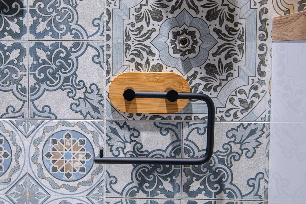 Držák toaletního papíru z kvalitní, černě lakované, oceli v kombinaci s populárním bambusem. Největší výhodou tohoto věšáku je jednoduché lepení na obklady pomocí velice silné 3M pásky. Samolepící koupelnové doplňky jsou ideálním řešením, pokud nechcete vrtat do obkladů. Velmi kvalitní lepící páska 3M přilne k různým povrchům a umožňuje snadné odstranění doplňků bez zanechání stop či poškození. Je...