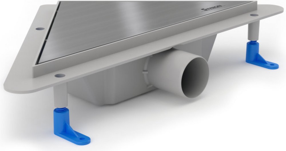 Tento moderní odtokový rohový žlab nabízí velmi kvalitní zpracování a kombinaci pevného plastu s leštěným nerezovým roštem.
