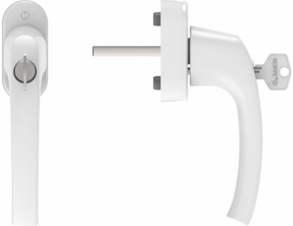 Hoppe Okenní klika Flensburg Secustic uzamykatelná F9016 bílá/N10A, 7/32-42mm, M5x45+50, 90°