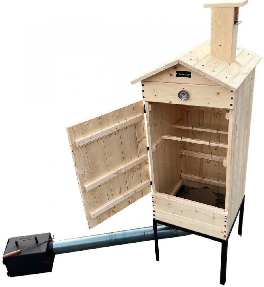 - Dřevěná udící komora o rozměrech cca. 50 x 50 x 100 cm