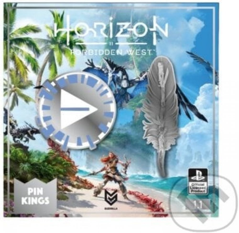 2 kovové odznaky s licenčním motivem ze hry Horizon: Forbidden West.