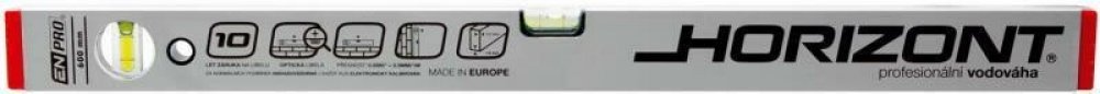 Horizont vodováha se dvěma libelami, přesnost 0,5mm/m = 0,0285°, eloxovaný otěruvzdorný povrch, tloušťka stěny ALU profilu 1,5mm, kapalina v libelách je UV stabilizovaná a fluorescenční, horizontální optická libela - usnadňuje a zvyšuje přesnost měření, vodováha je odolná proti provozním nárazům, 10 let záruka na libely, KAŽDÝ KUS ELEKTRONICKY TESTOVÁN.