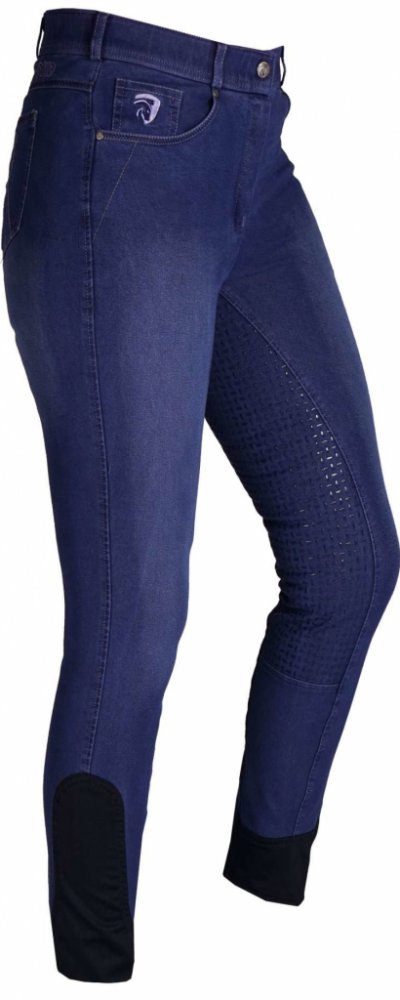 Moderní jezdecké kalhoty vyrobené z elastické vysoce kvalitní džínové látky. Jezdecké kalhoty mají plné silikonový sed, který poskytuje extra přilnavost v sedle.