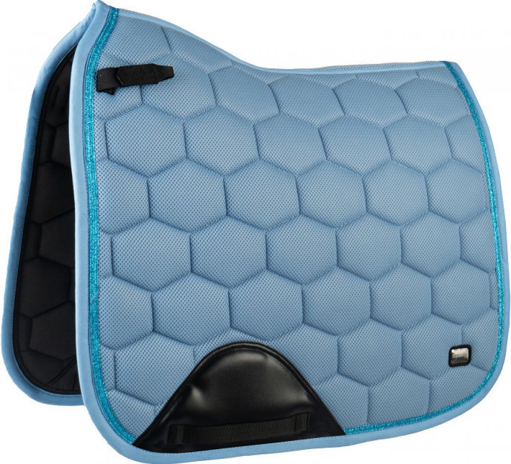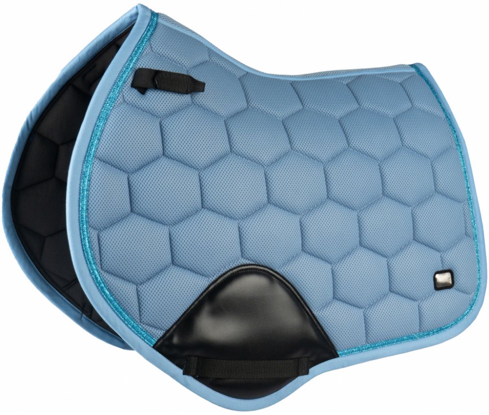 Sportovní podsedlová dečka pro koně vyrobená ze síťoviny, zakončená tónovanými třpytivými detaily pro luxusní vzhled. Ergonomický tvar s vysokým kohoutkem zajišťuje skvělé padnutí.Specifikace produktu:- Prodyšná síťovaná sedlová podložka- Tonální třpytivé detaily- Optimálně tvarované s vysokým kohoutkemMateriál: Vnější: 100% polyester, lemování: 100% bavlna, popruh: 100% polypropylen