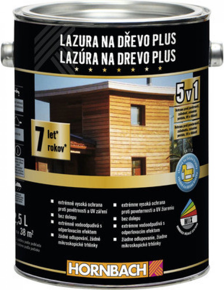 Hornbach vodou ředitelné lazury s minimální údržbou do extrémního klima na okna a dveře penetrační (propustné) exteriéry 15.0 m2/l 2.5 l dvouvrstvé