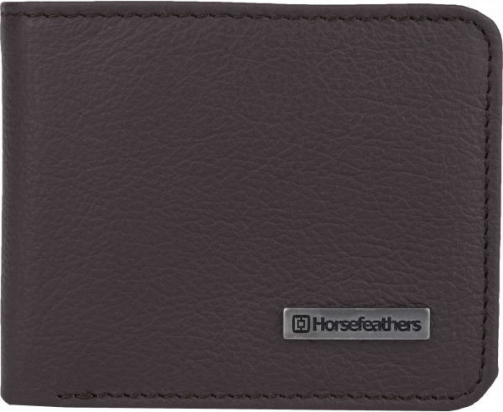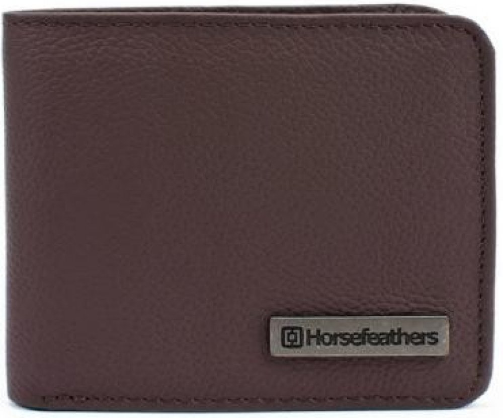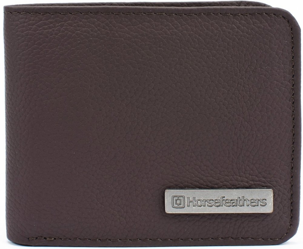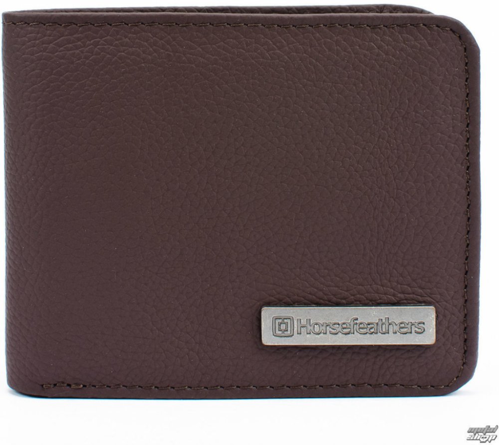 Pánská kožená peněženka Horsefeathers Brad Tobacco s kovovým znáčkem na přední straně.