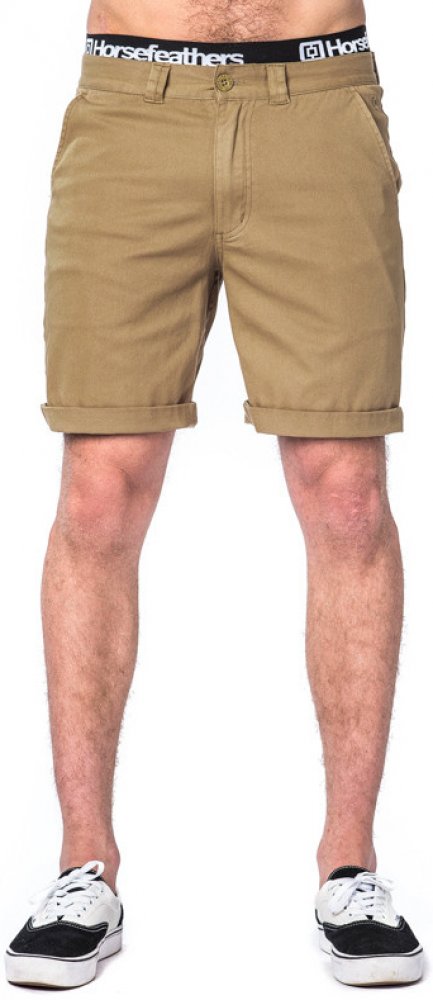 Pánské ohrnuté béžové kraťasy HORSEFEATHERS MACKS SAND skvěle doplní tvůj letní look. Kraťasy jsou vyrobeny z velmi příjemného materiálu. Díky přidanému elastanu, tě v pohybu rozhodně neomezí. Mají skvěle padnoucí střih. Zapínají se pomocí knoflíku a zipu. V oblasti pasu mají poutka na pásek. Určitě tě potěší 4 volně přístupné kapsy - dvě vepředu a dvě vzadu. Střih po kolena. Logo brandu najdeš na...