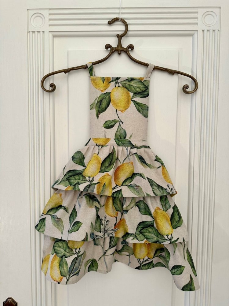 Veselá dětská zástěra Lemon Linen z Lotyšska pro malé kuchaře. Směs bavlny a lnu v nejvyšší kvalitě. Odolná a stylová, ručně šitá | EuropeElite.eu