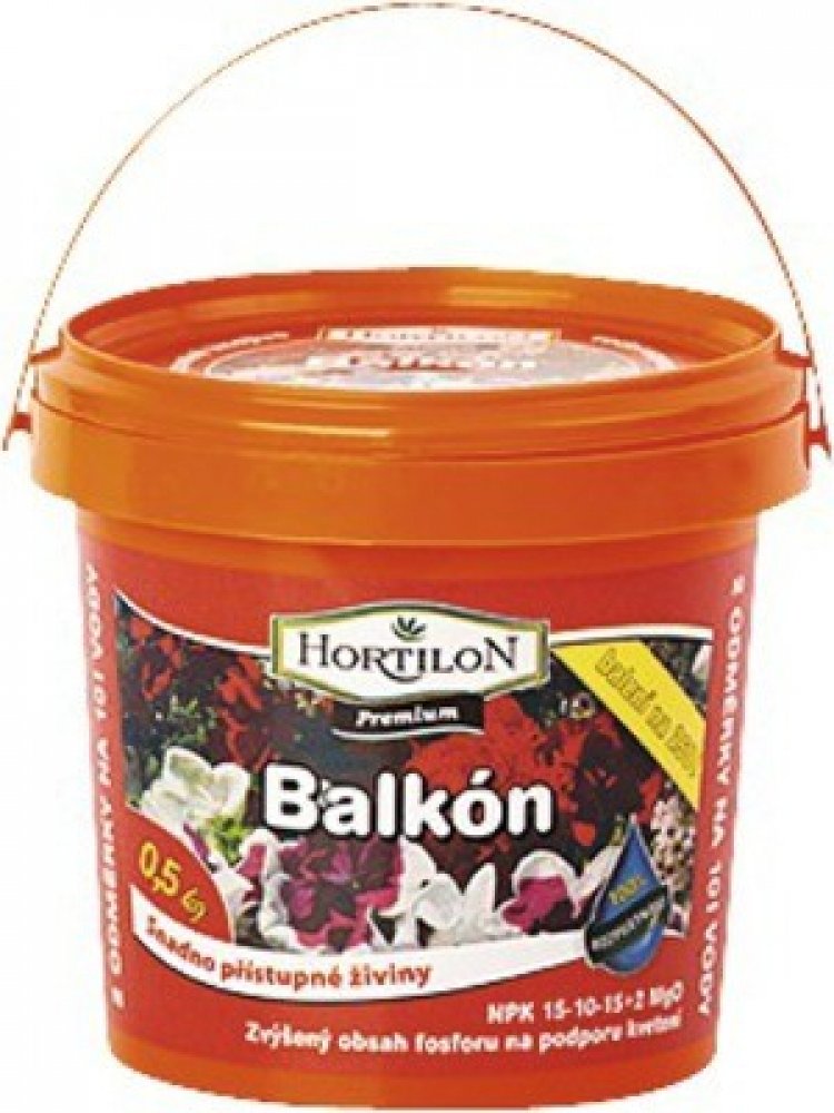 Vodorozpustné krystalické hnojivo HORTILON se používá pro hnojení všech balkónový květin (muškáty, verbeny, petúnie, surfinie, aksamitníky, bakopa...) s výjimkou kyselomilných rostlin. Hnojivo podporuje správný růst i vývoj rostlin.