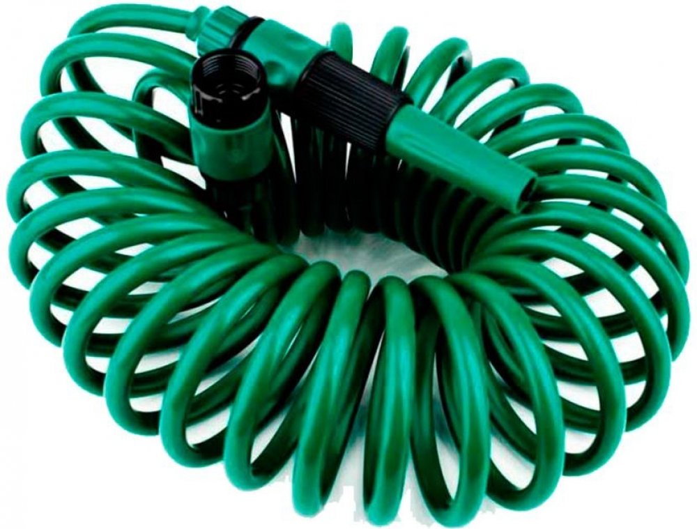 Natahovací flexibilní spirálová hadice. Dobře skladný a praktický pomocník při zavlažování.S touto flexibilní spirálovou hadicí se můžete bez problémů pohybovat po celé kultivační ploše, s dosahem až 7,5 metru.Hadice je potažená spirálou ze zeleného PVC. Obsahuje multifunkční rukojeť regulátoru pro přizpůsobení toku vody vašim potřebám a vlastnostem vaší zahrady.