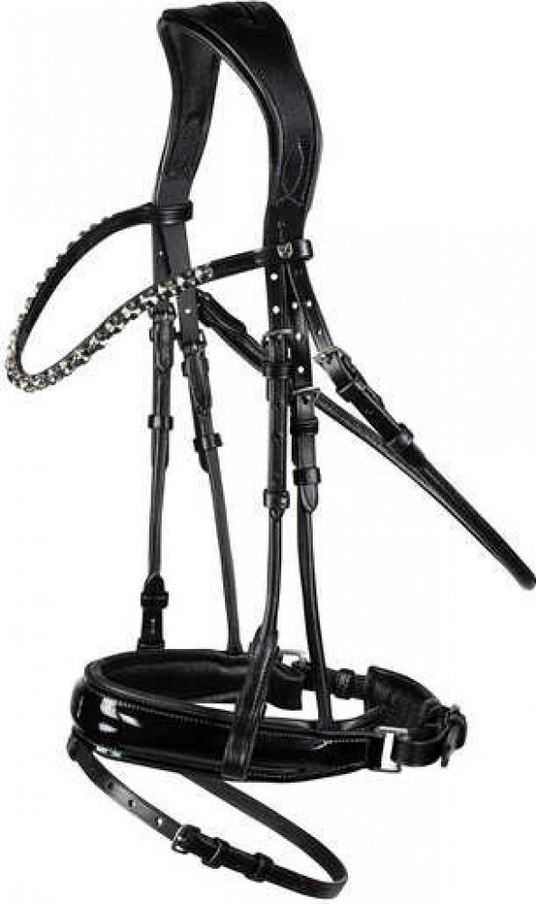 Vysoce kvalitní kůžeErgonomický designPoutavé křišťálové akcenty na čelenceSpeciálně tvarovaná a polstrovaná čelenkaMěkce polstrovaný švédský nánosníkKulaté všité lícnice Otěže nejsou zahrnuty