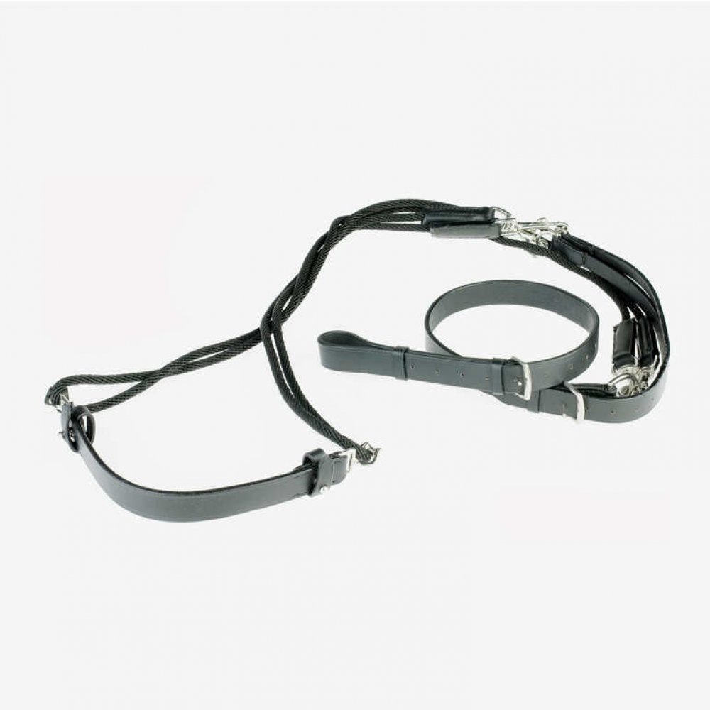 Lonžovací pomůcka sloužící k zabránění zvedání hlavy, uvolnění hřbetu a aktivaci zádě. Zapíná se do obřišníku/podbřišníku mezi přední nohy koně, odkud vede do nátylníku s nerez rolnami (nátylník je součástí dodávky), kterými se provleče a vede do udidlových kroužků, odkud vede zpět k části od podbřišníku k nátylníku, kde se zapíná do nerez očka. Používá se jak při ježdění tak lonžování. Materiál: kůže, kulatý provázek. Velikosti: pony, cob a full.