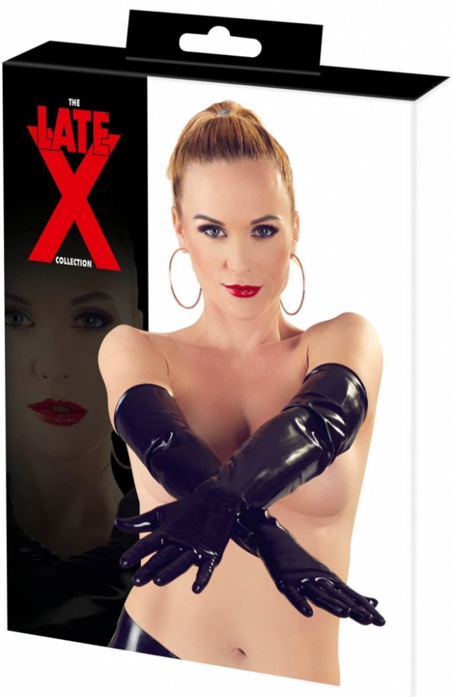 Dlouhé rukavice z čistého latexu patří do základní výbavy každého příznivce tohoto materiálu. I samotné rukavice na nahém těle již vytvářejí velmi vzrušující kombinaci a pokud takto zkrášlená žena pohladí svého partnera na správných místech, není třeba podpůrných erekčních prostředků.