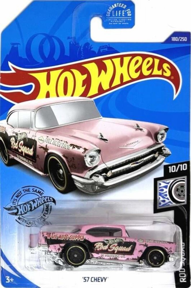 Sběratelský kovový model autíčka z kolekce HOT WHEELS - '57 Chevy Pink (E7)Číslo série: 10/10Roční číslo modelu: 180/250Kolekce: Rod SquadRok výroby: 2017Stav obalu: průměrnýVelikost modelů je cca 4-9 cm (dle typu). Není vhodné pro děti do 3 let.