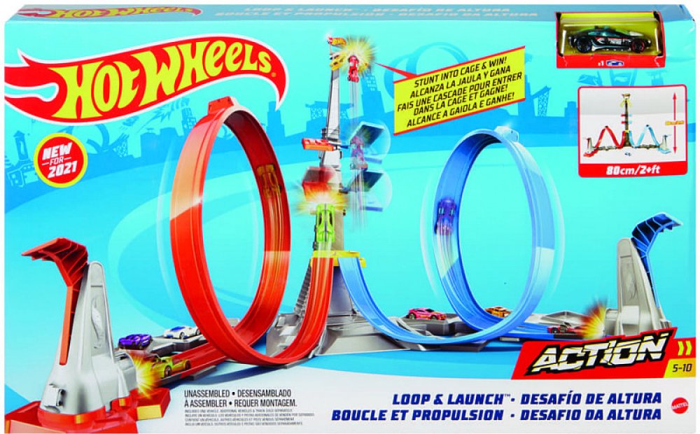 Závoď na dráze Hot Wheels do klece pro vítěze! Autíčka se prohánějí po dráze a projíždějí smyčkou, která je dovede ke kleci, jež se může vznést až 60 cm do vzduchu! Děti si zamilují kaskadérské kousky a závody v této vzrušující sadě dráhy. Klec lze nastavit na různé úrovně obtížnosti. Sada se snadno sestavuje a skladuje. Spirálovou smyčku a dráhu lze snadno rozebrat.