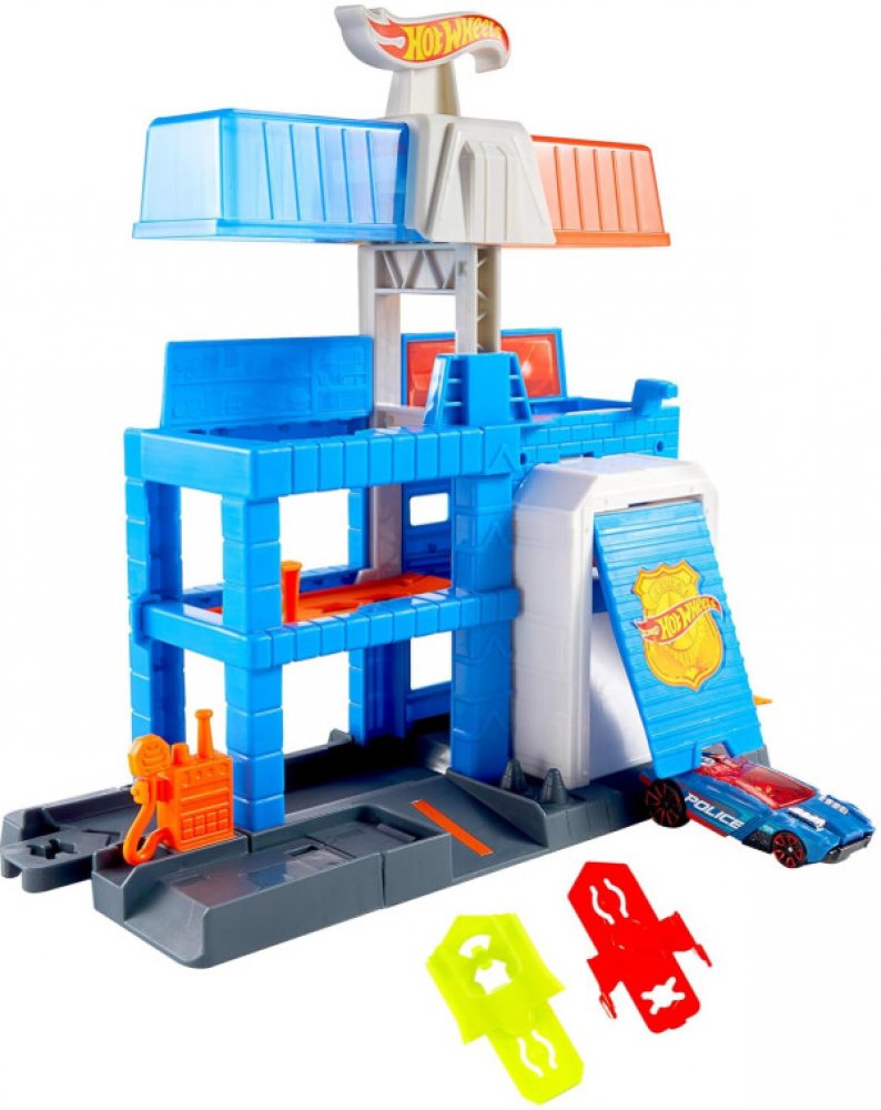 Hledáte Hot Wheels City Downtown Police Tower ? U nás za skvělou cenu 489,00 Kč! Neváhejte a nakupte u profesionálů. Prozkoumejte policejní věž v centru města Hot Wheels City, která se rozkládá na 3 úrovně a nabízí spoustu dobrodružství.Vyjeďte dětským výtahem do druhého patra, kde je na výběr z několika únikových cest: zrychlete po rampě bočním východem nebo stiskněte přepínač stopky a vyjděte dveřmi v přízemí.Vytáhněte ceduli Hot Wheels a odhalte stanici strážní věže. Auta zde mohou parkovat, dokud nejsou vyzvána k akci, a sledovat Hot Wheels City průsvitnými červenomodrými okny.Základna herní sady obsahuje detaily, které lze snadno ovládat stisknutím tlačítka, jako je palivová nádrž s pohyblivou hadicí, funkční dveře a nájezdová rampa. Sada obsahuje spojovací body systému Speed Snap Track, které dětem umožňují připojit další koleje nebo otevřené herní sady.