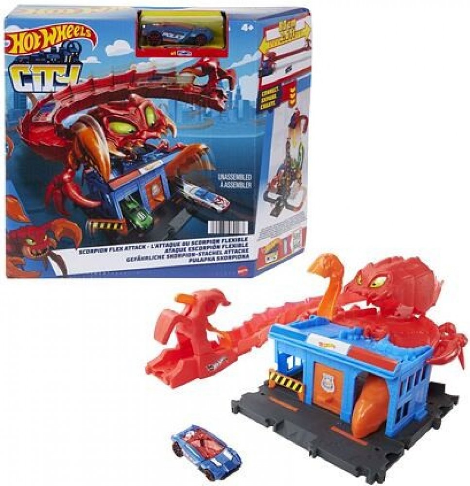 S Hot Wheels™ City Příšerná odplata mohou děti začít stavět svoje Hot Wheels™ City město, nebo mohou své město rozšířit pomocí kteréhokoliv balíčku z této řady. Obří tvorové ovládli známá místa ve městě a vytvořili vzrušující překážky. Pusť se do nových dobrodružství! Vhodné od 4 let.