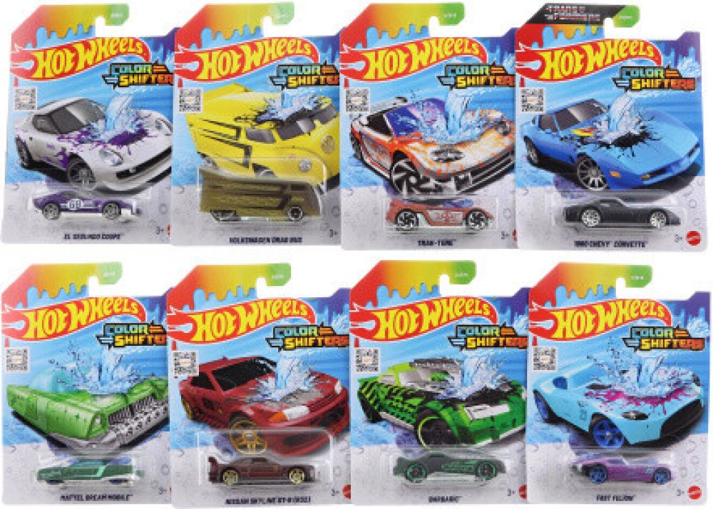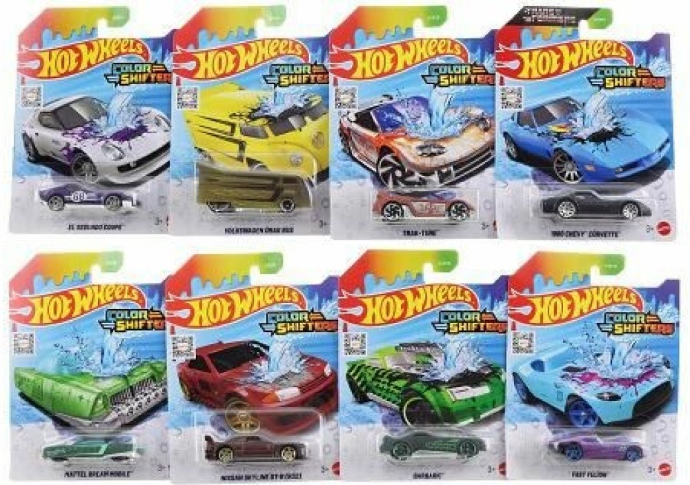 Změň barvy angličáků z řady Hot Wheels! Je to tak snadné! Teplou vodou změníš jeho barvu a studenou ji zas vrátíš zpět! Některá autíčka dokonce umí měnit víc barev! Tato sada nabízí širokou škálu dekorů a odstínů, které ocení každý sběratel. Pocákej angličáka měnícího barvu vodou nebo ho do ní jenom ponoř a sleduj, jak se ti promění před očima! Je to jako mít 2 autíčka v jednom – můžeš vyrazit na silnici, závodit po závodní dráze, pak změnit barvu a závodit znovu! Věk 3+.